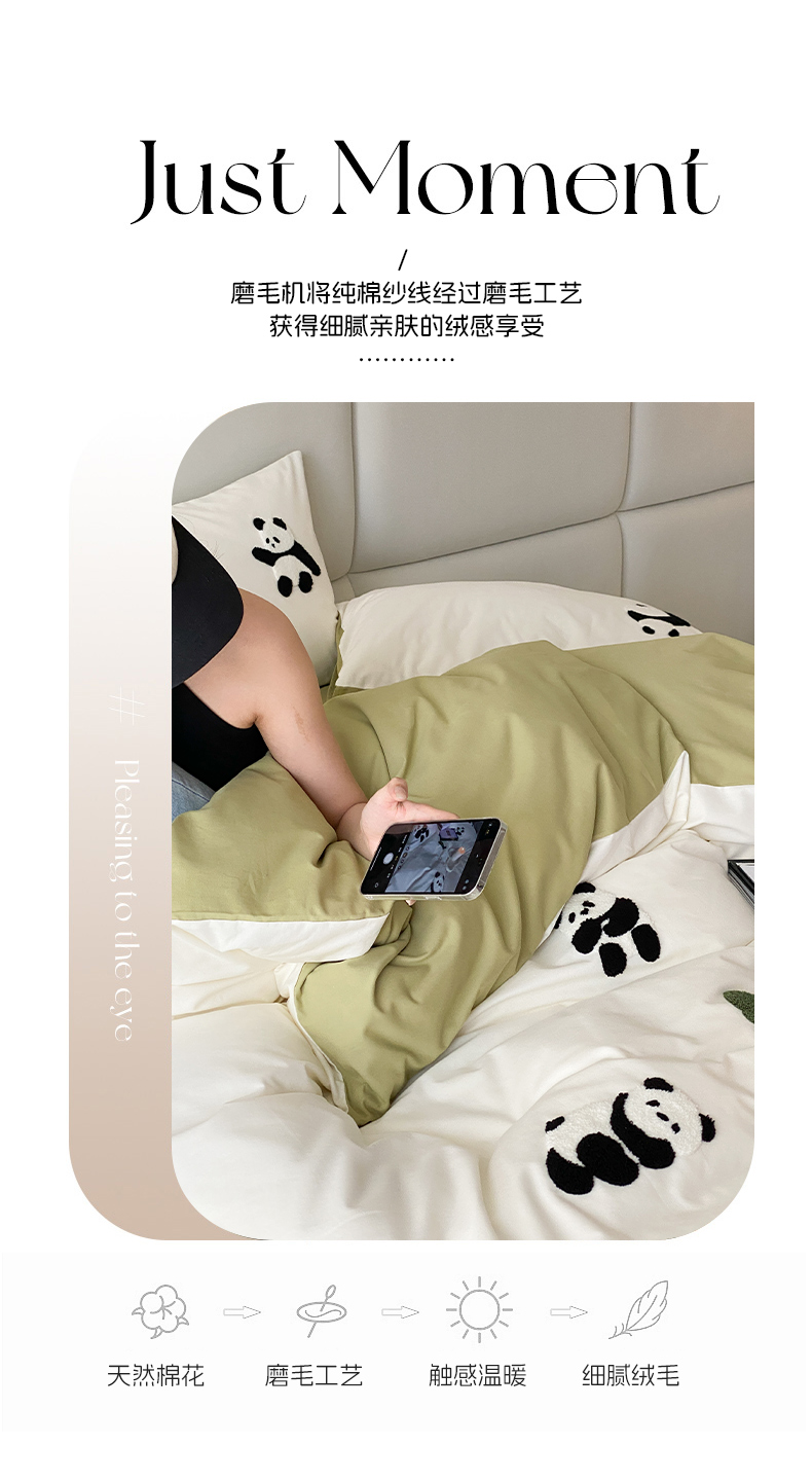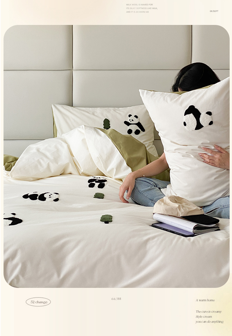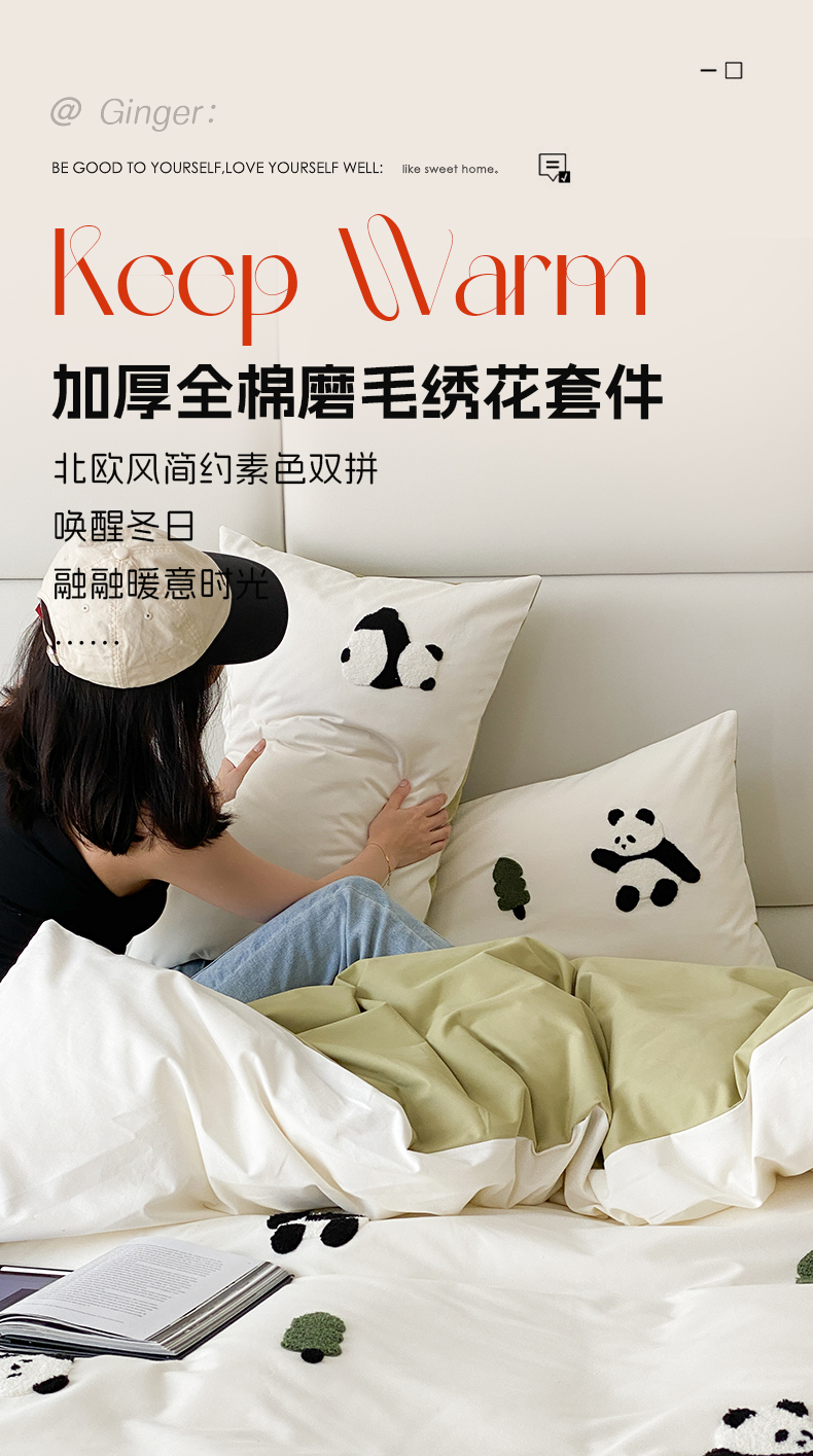 当前位置: 91家纺网 > 商品网购 > 床品套件 > 四件套 > 普通磨毛四件套 > 时光里 2023INS风软萌可爱60s加厚磨毛刺绣款全棉四件套 熊猫