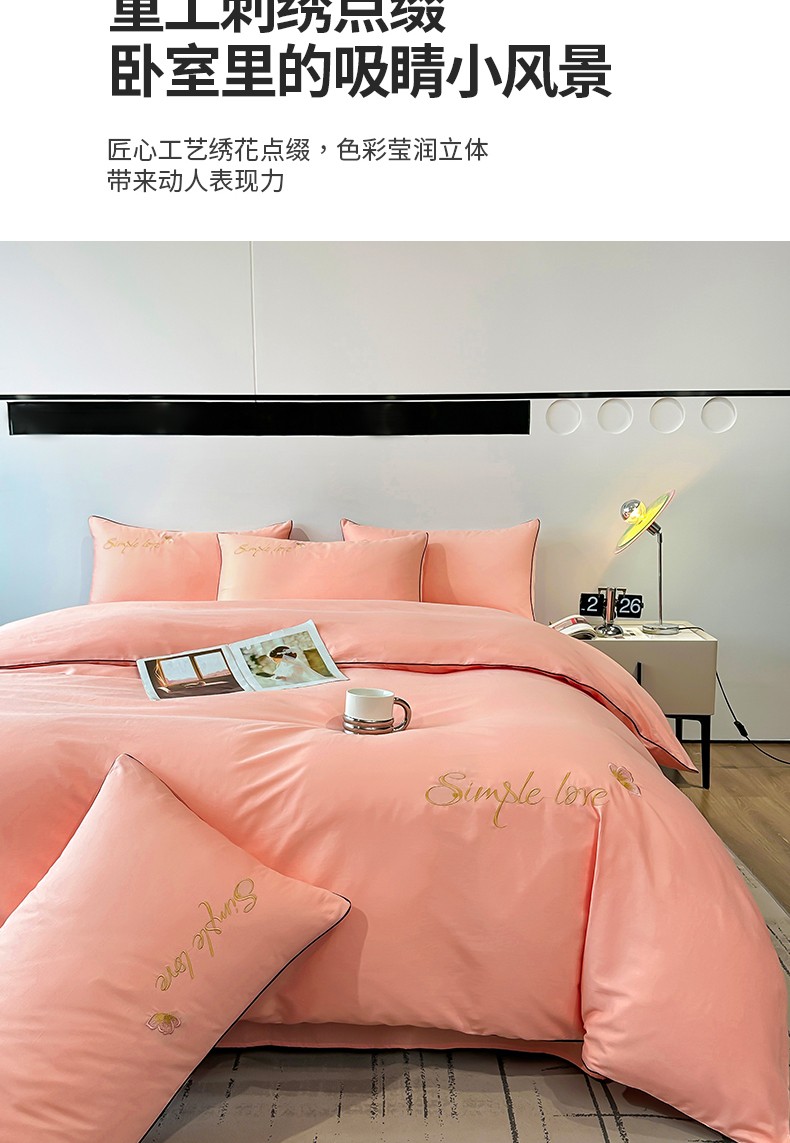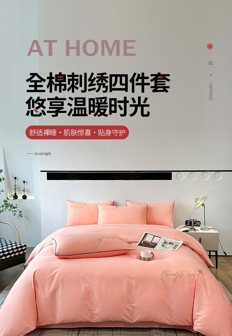 当前位置: 91家纺网 > 商品网购 > 床品套件 > 四件套 > 全棉普通四件套 > 宇彬 直播热爆新款全棉母婴级麻绳滚边纯色刺绣四件套 轻奢 玉颜粉