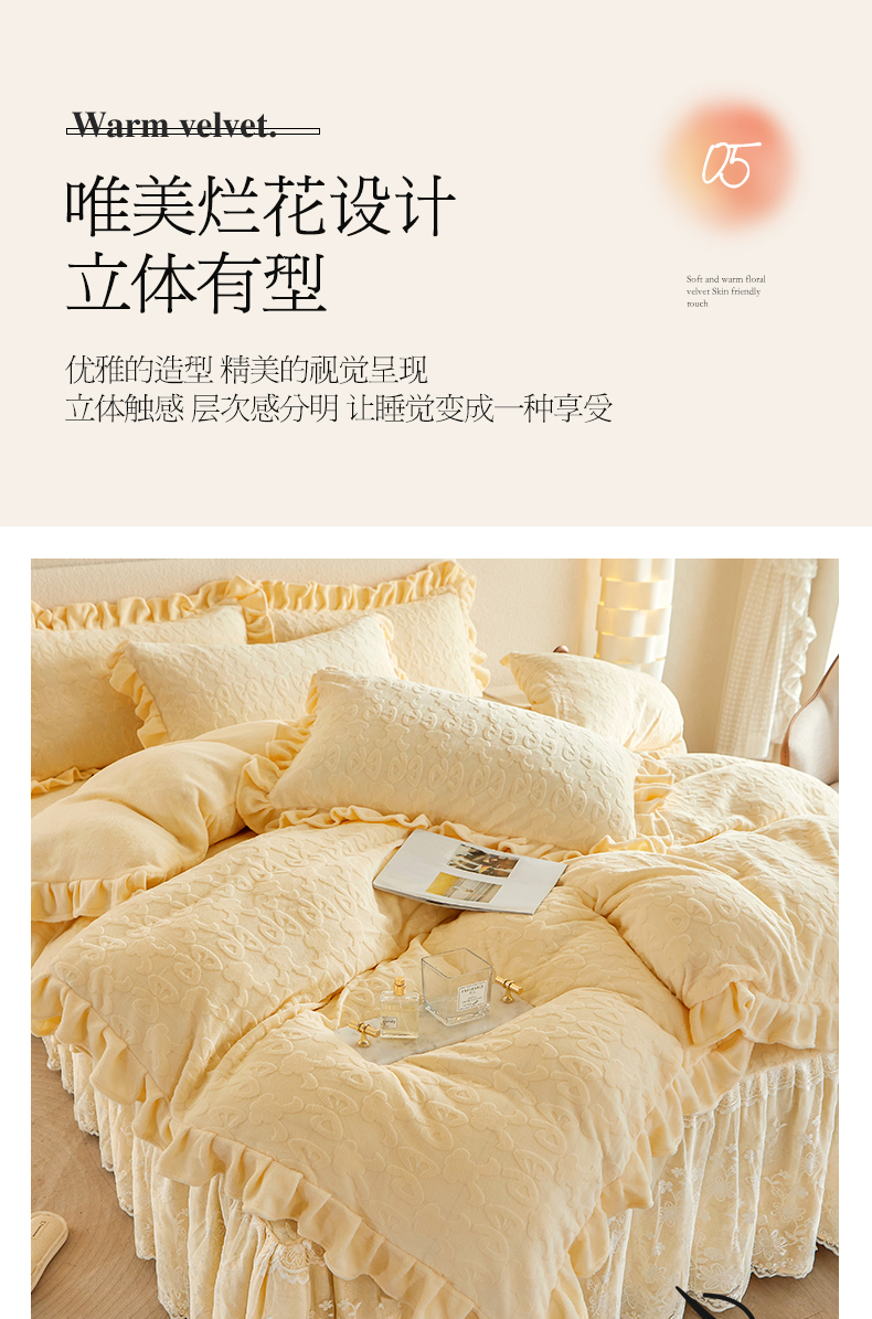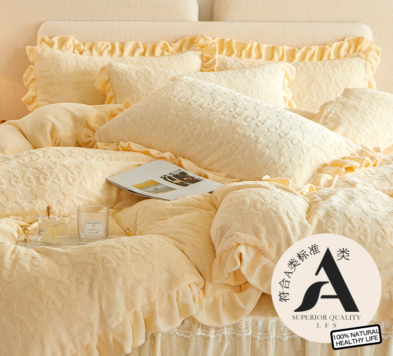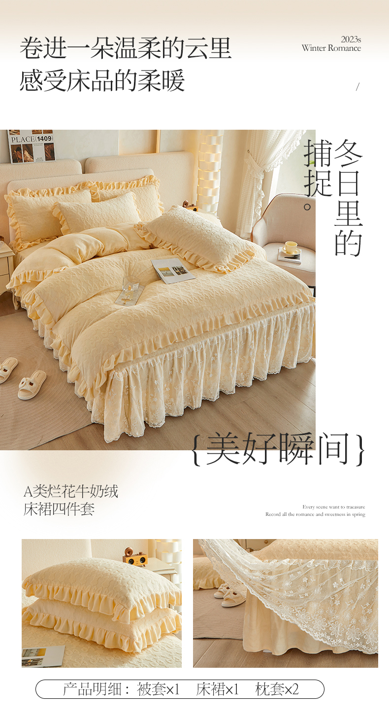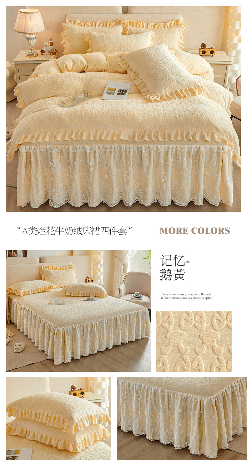 当前位置: 91家纺网 > 商品网购 > 床品套件 > 四件套 > 牛奶绒四件套 > 宜凡 2023新款烂花牛奶绒床裙四件套 记忆-鹅黄