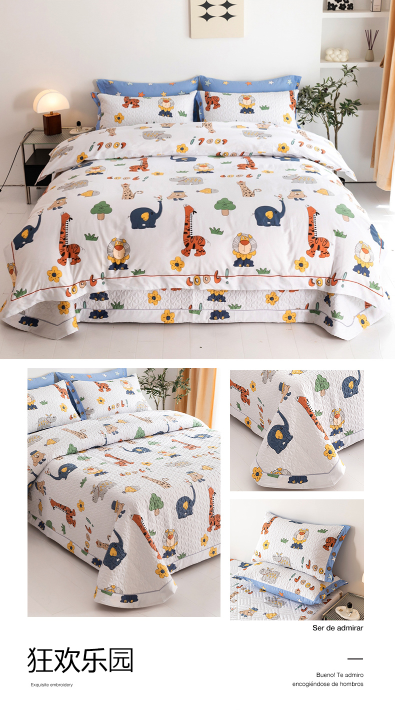 优乐家纺 2025新款纯棉印花夹棉系列床盖三件套-纽扣款新狂欢乐园,新狂欢乐园