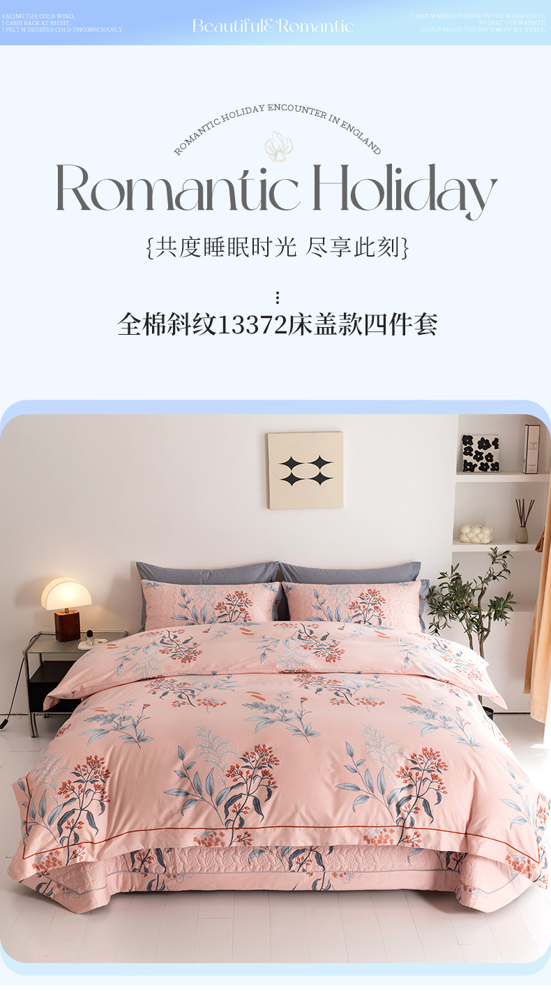 (总)优乐家纺 2025新款全棉斜纹13376单层被套夹棉床盖款四件套,安琪-黄,安琪-绿,波西米亚,博尔-咖,春意盎然,朵唯,花颜悦色,迷雾,慕斯,南薇,南薇-兰,普卡拉-红,普卡拉-兰,清婉,蔚然花,早春