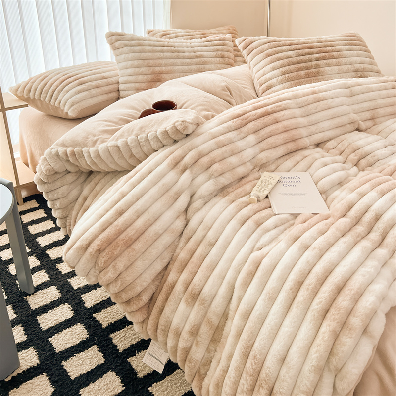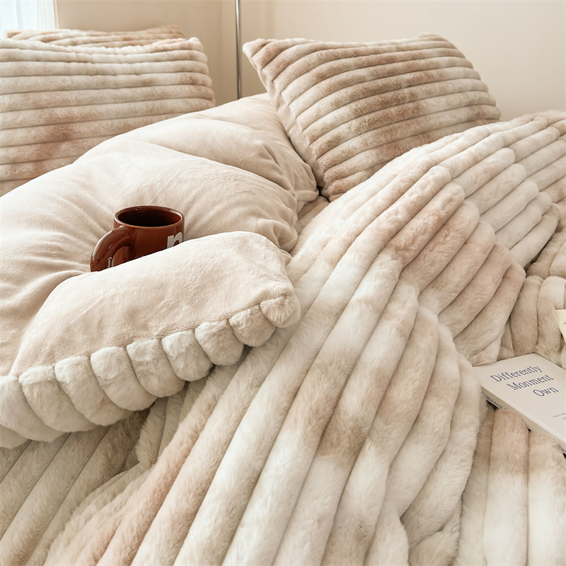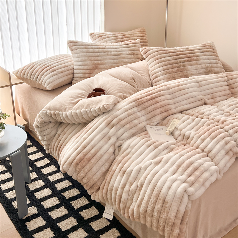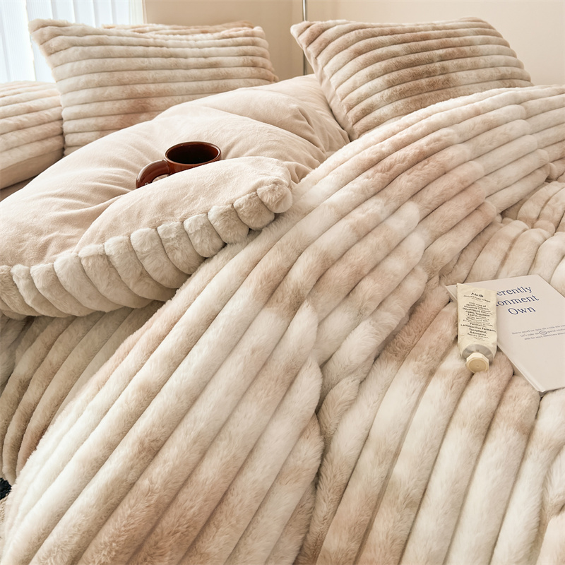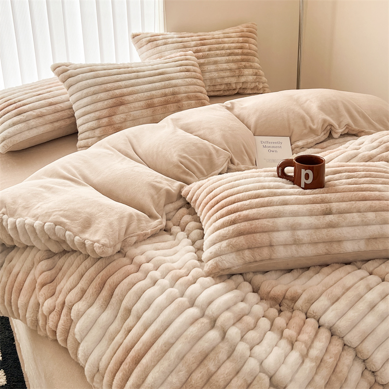 (总)顾里家纺 2025新款美拉德兔毛四件套,斑纹咖,豹纹灰,豹纹咖,蝶影,繁花,格调,花境,花蕊,花语,简爱,玫瑰情话,羽叶