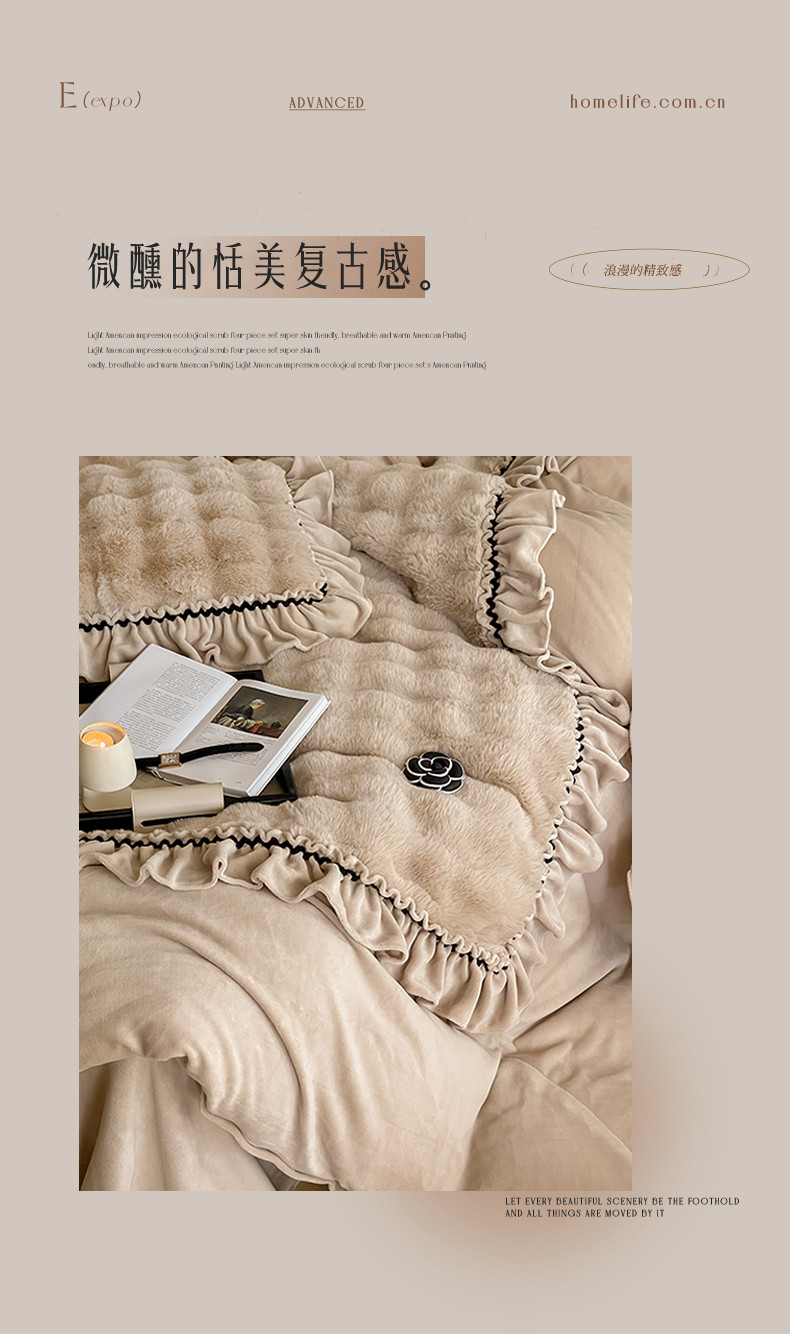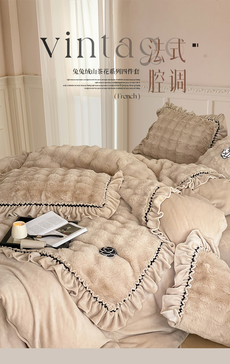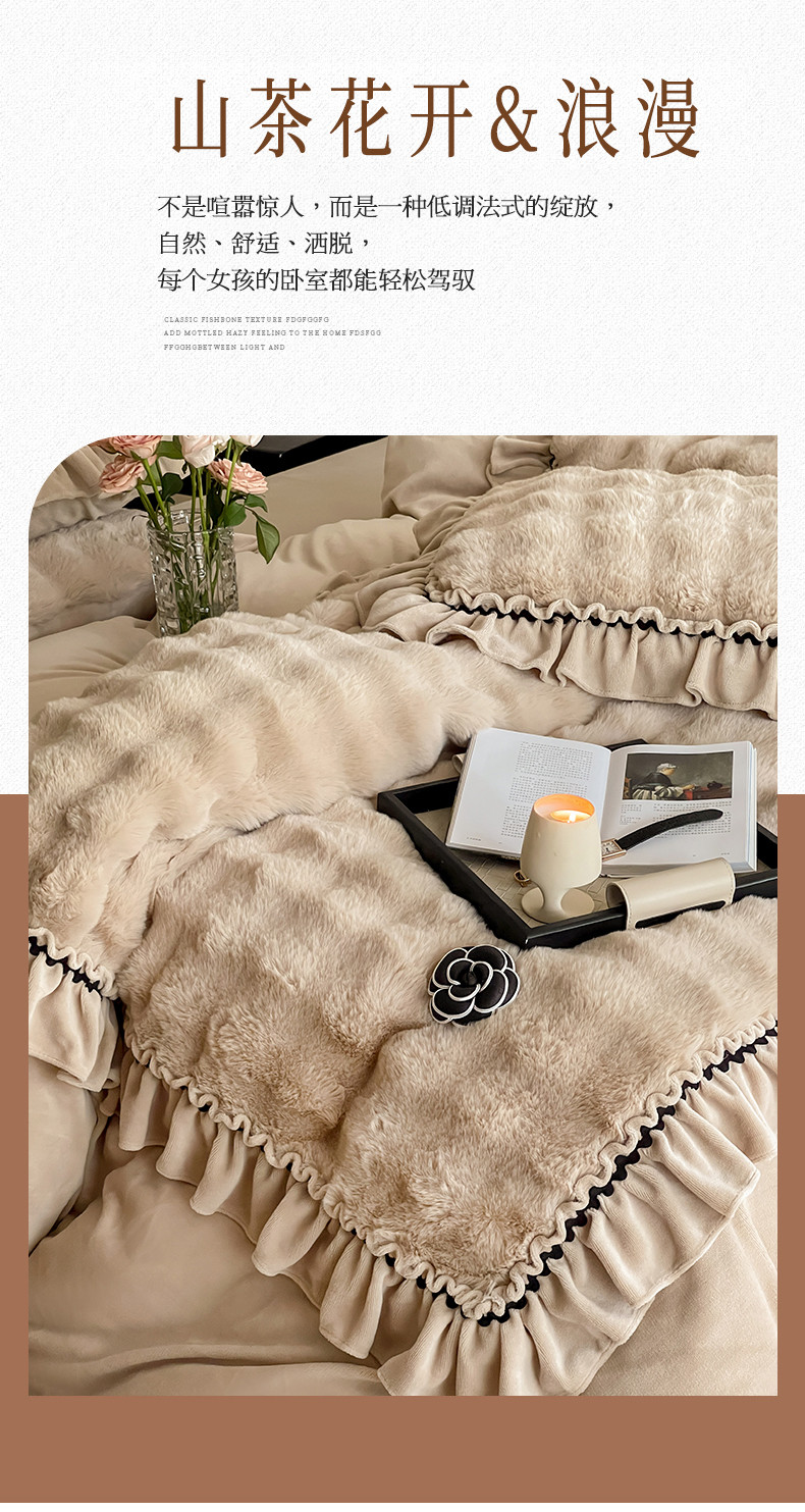 当前位置: 91家纺网 > 商品网购 > 床品套件 > 四件套 > 兔毛绒四件套 > 婳庭家居 2023新款山茶花兔兔绒系列四件套 山茶花-卡其