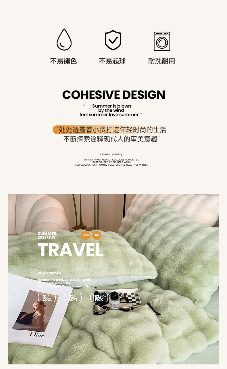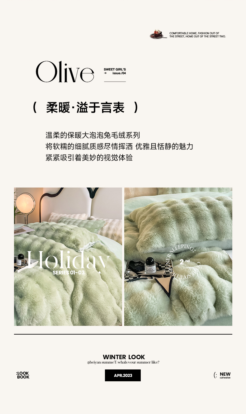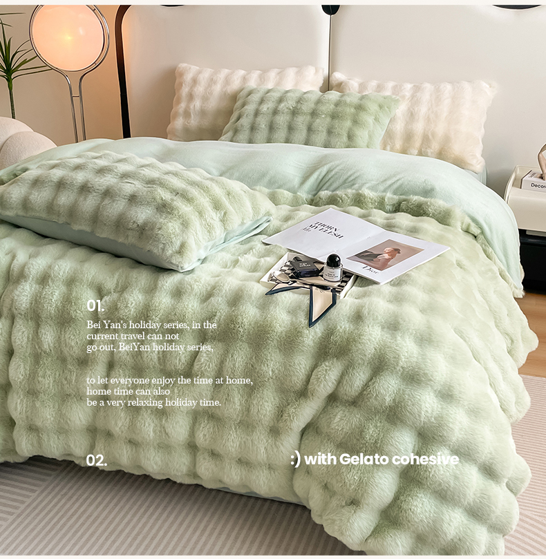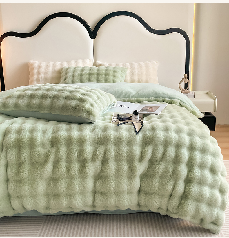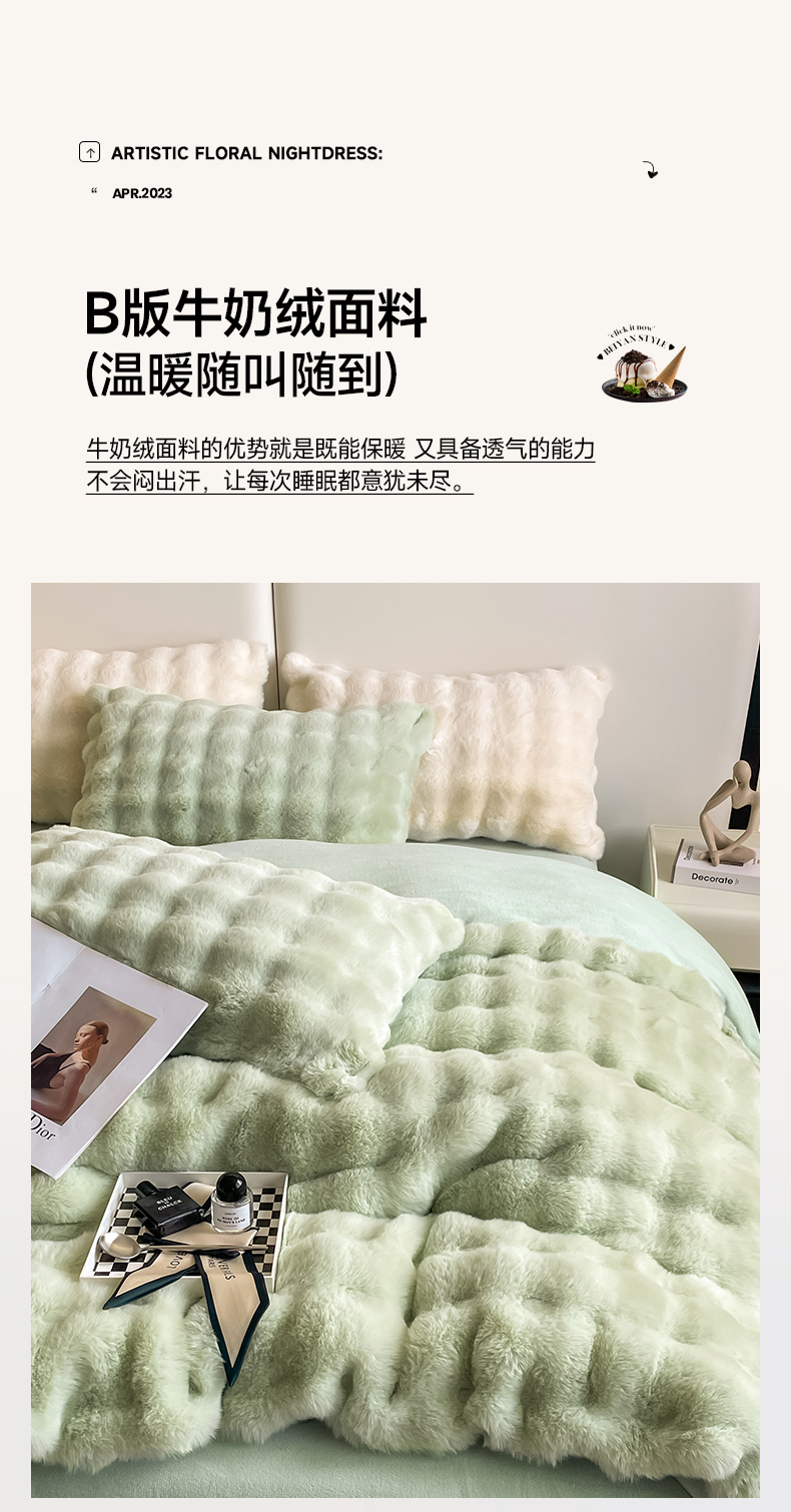 商品名称:寐居家纺 2023新款高克重大泡泡兔毛绒四件套系列 抹茶绿