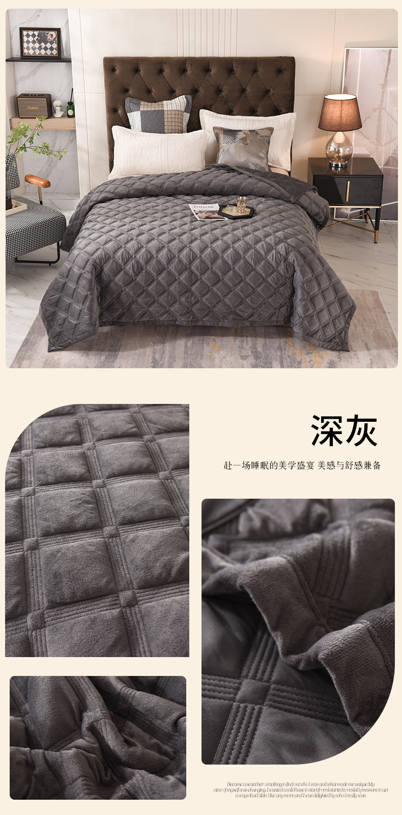 商品名称:恩和家纺 2024新款水晶绒牛奶绒法兰绒床盖方格款 方格款-深灰