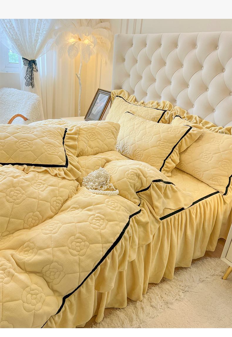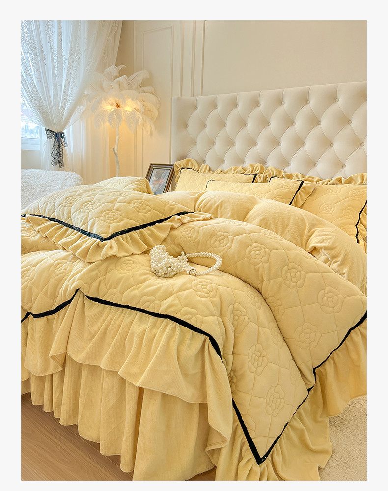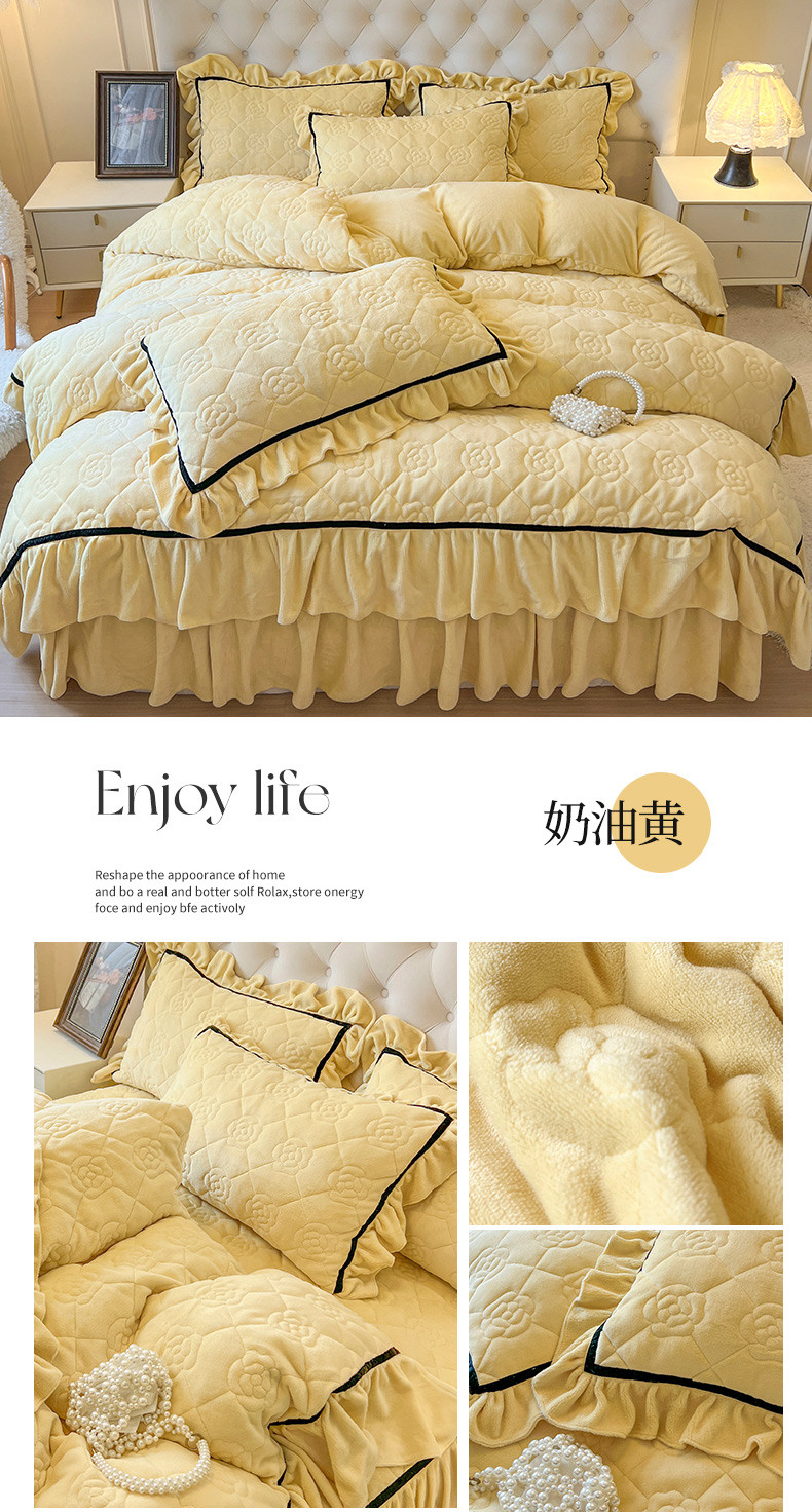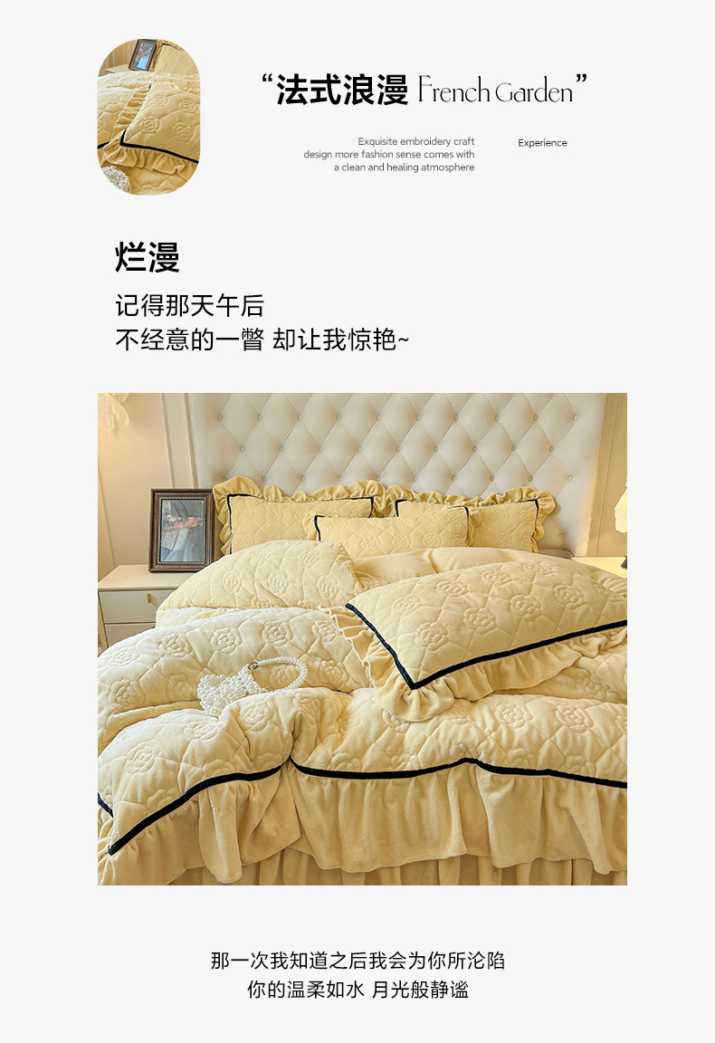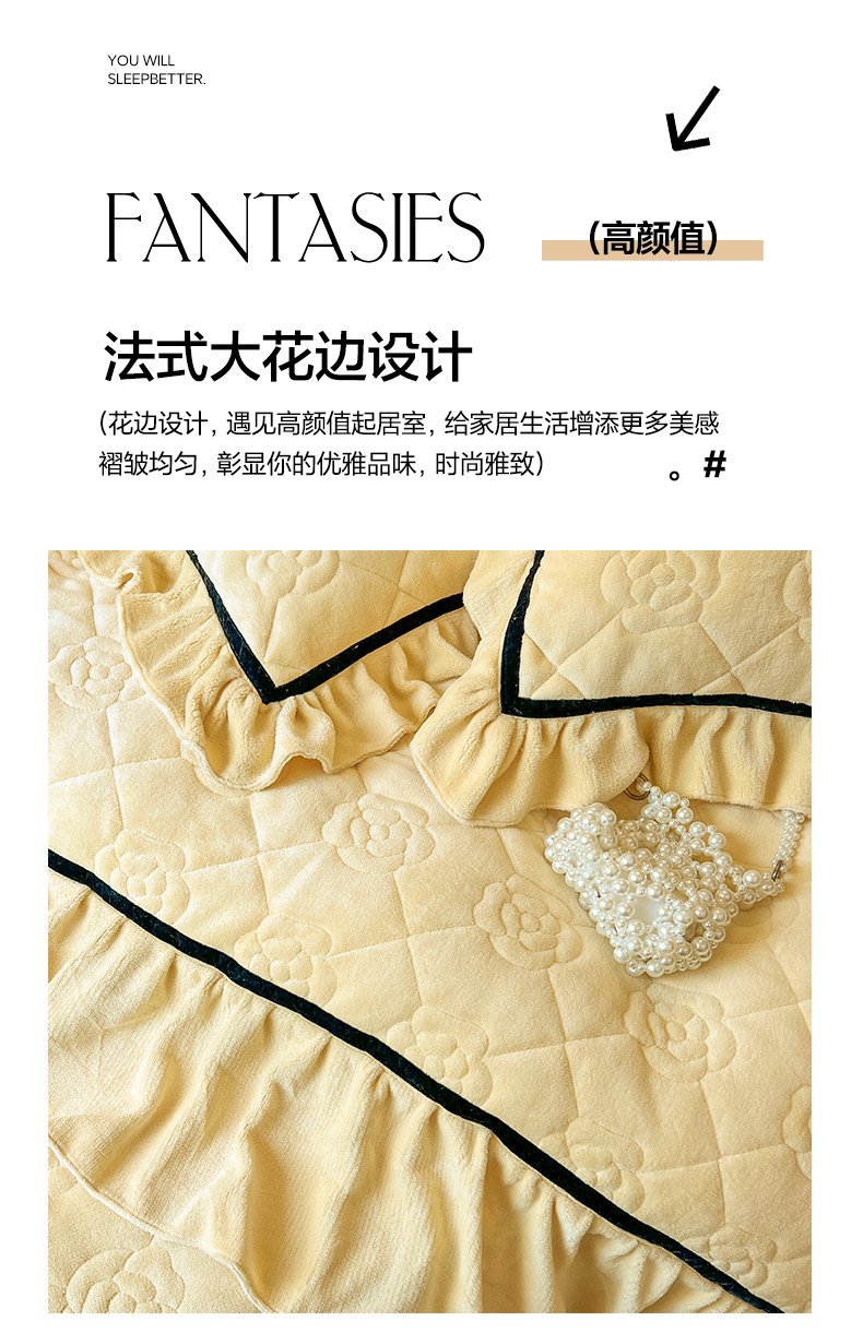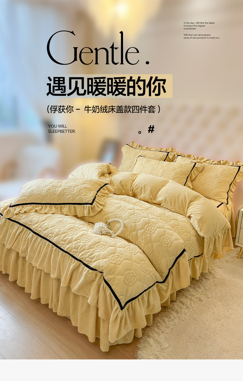 当前位置: 91家纺网 > 商品网购 > 床品套件 > 四件套 > 牛奶绒四件套 > 网红馆 2025新款高克重加厚保暖牛奶绒法式大花边四件套-眷恋 眷恋-奶油黄