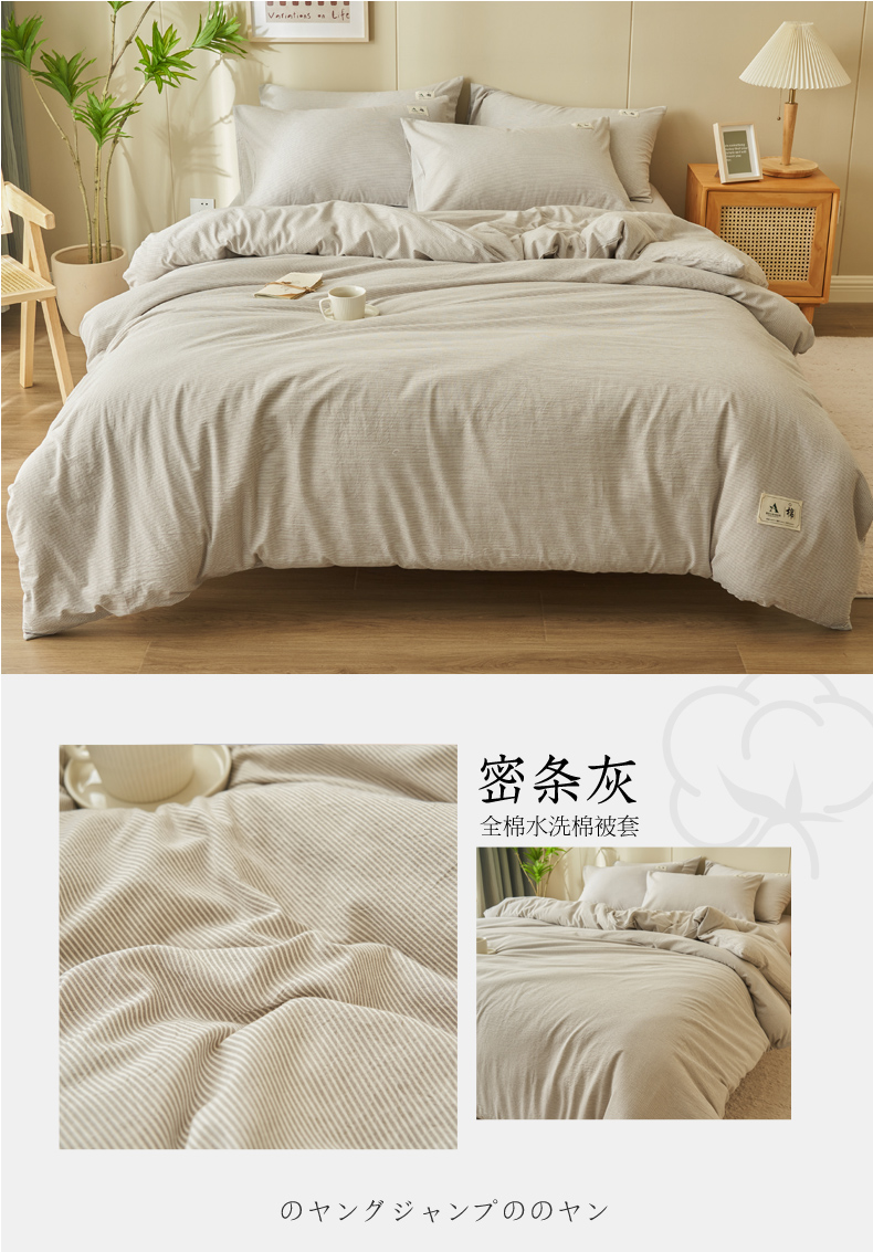 • 91家纺网 家纺一手货源 找家纺 21度C 2024新款全棉色织水洗被套 密条灰