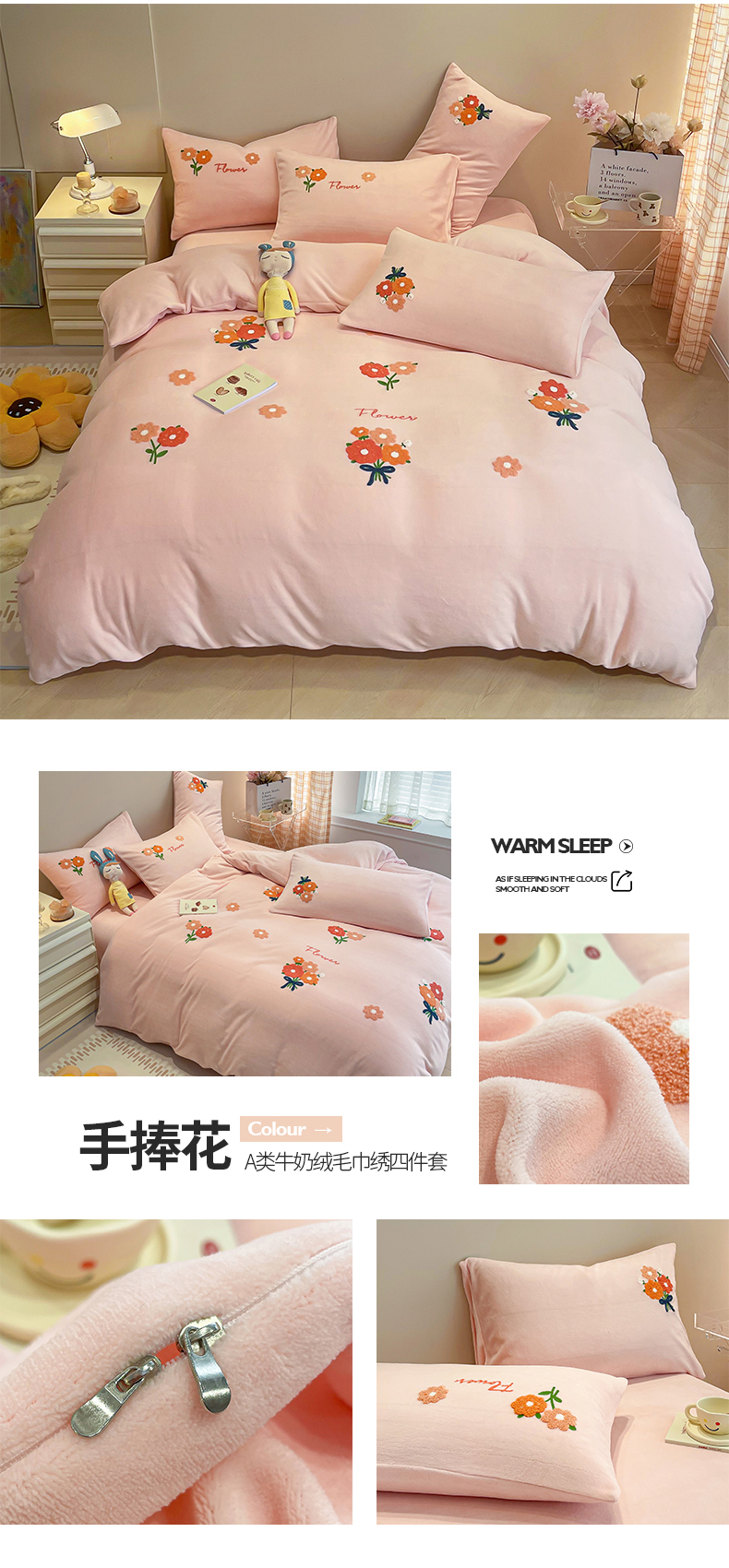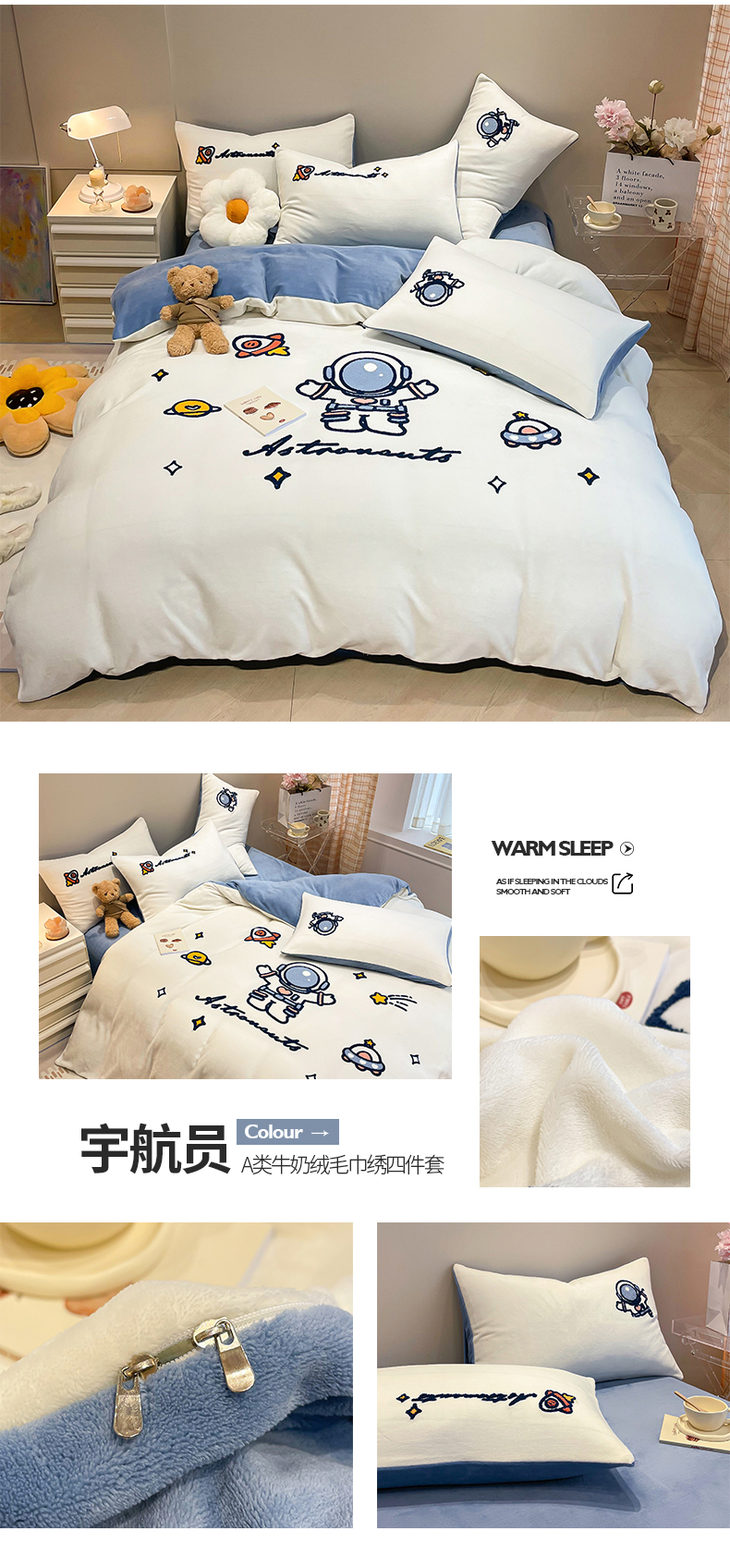 商品名称:(总)懒猫家纺 2024新款牛奶绒毛巾绣四件套