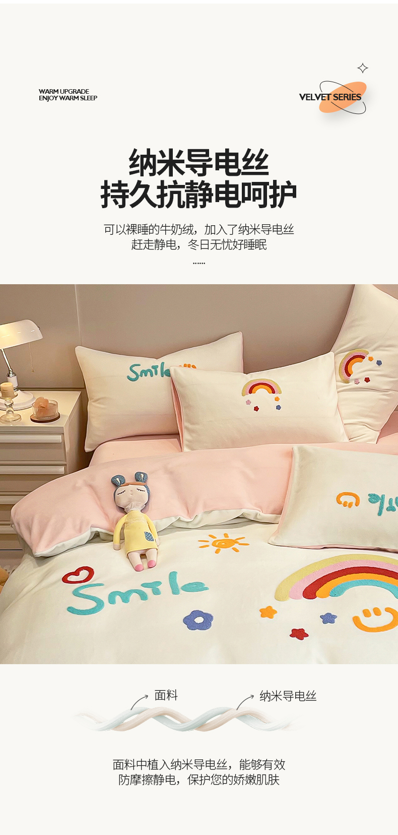 (总)懒猫家纺 2025新款亲肤舒适牛奶绒四件套-可可小姐系列,可可小姐-瓷白,可可小姐-水粉