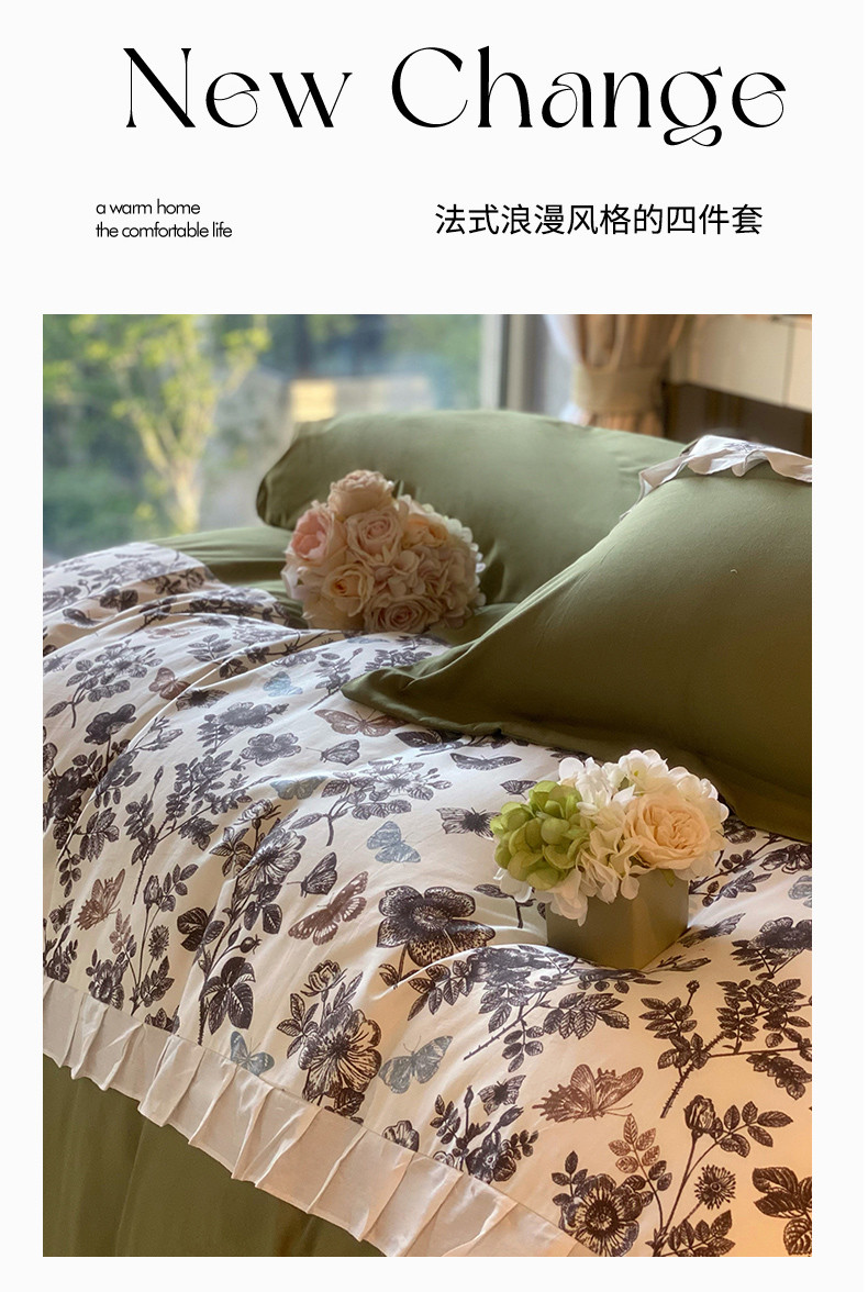 苏源家居 2023新款荷叶边拼接磨毛加厚四件套-安娜 安娜-军绿