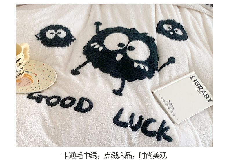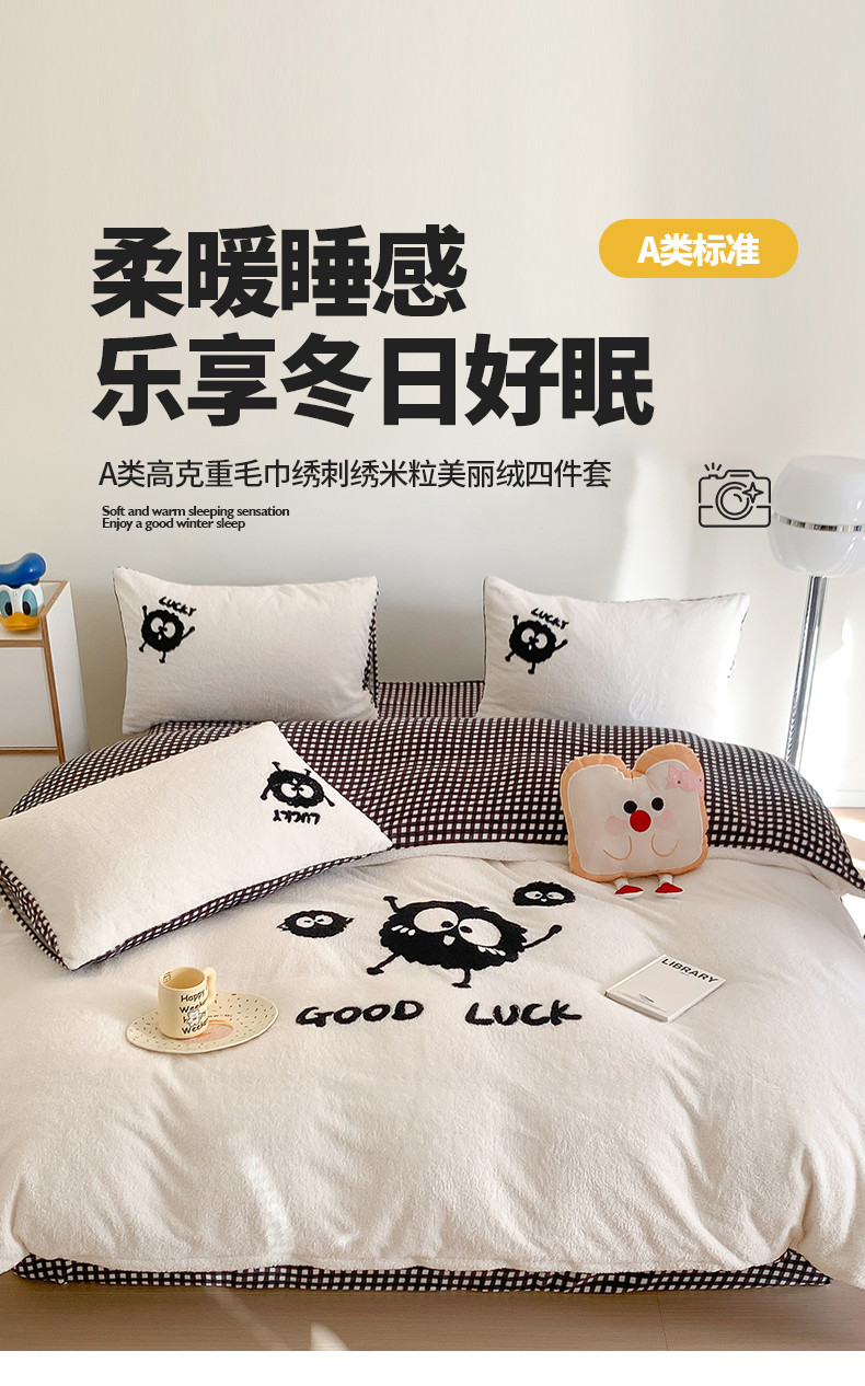 商品名称:桃子家居 2023新款A类高克重毛巾绣刺绣米粒美丽绒牛奶绒四件套 绒毛巾绣-大煤球
