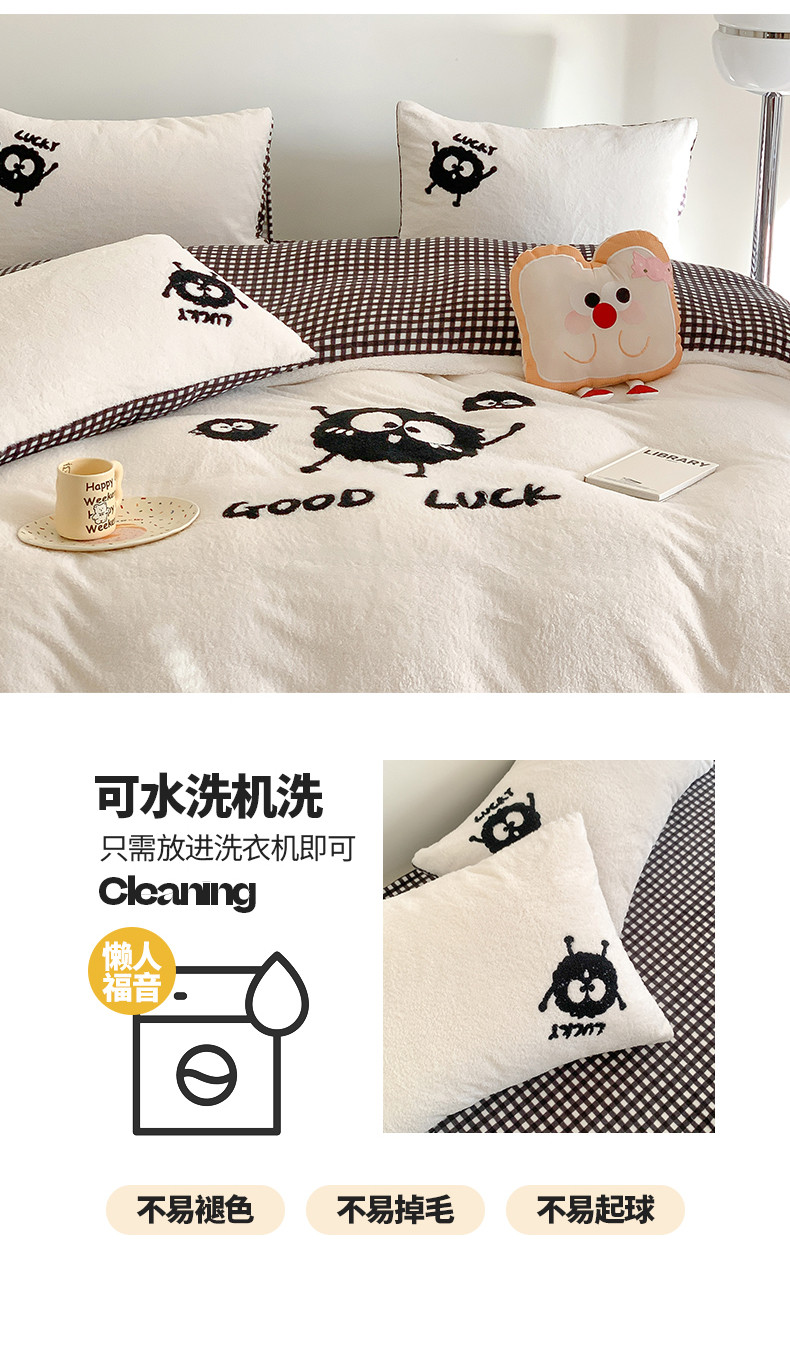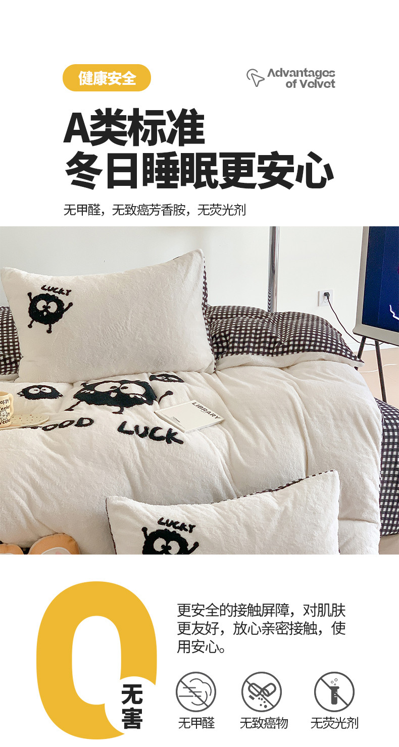 (总)桃子家居 2025新款A类高级仿生绵羊绒兔毛贴布绣刺绣工艺卡通少女加厚牛奶绒系列四件套,绵羊绒-冬日熊,绵羊绒-狗狗伙伴,绵羊绒-蓝条咖啡狗,绵羊绒-毛球猫咪,绵羊绒-圣诞小狗,绵羊绒-星星人