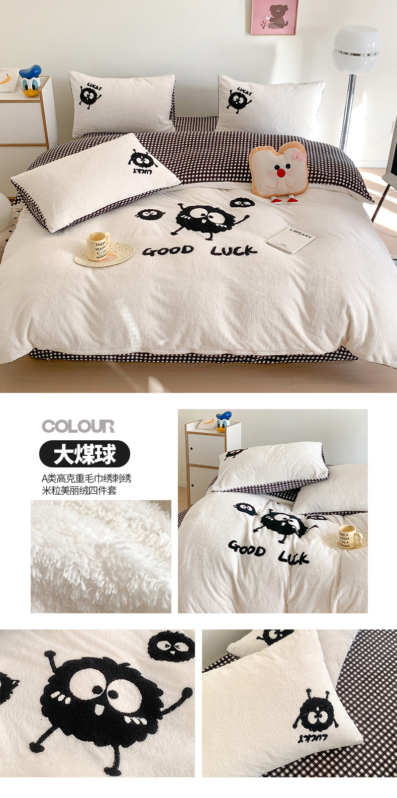 桃子家居 2023新款A类高克重毛巾绣刺绣米粒美丽绒牛奶绒四件套 绒毛巾绣-大煤球
