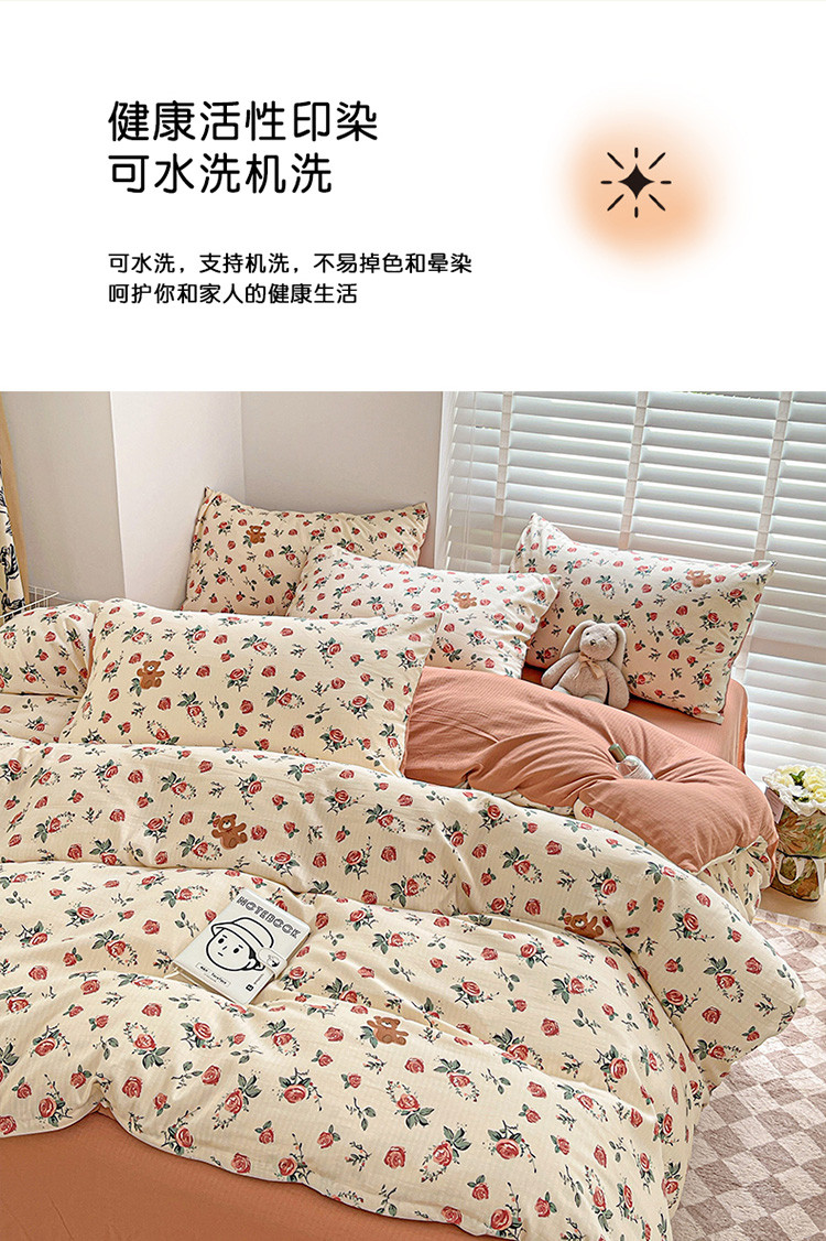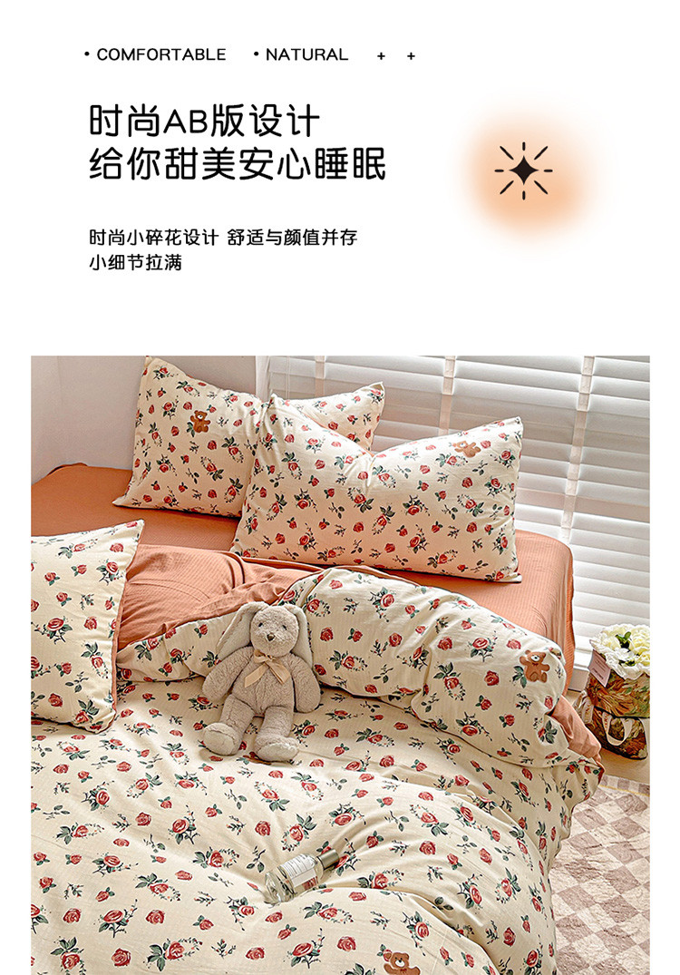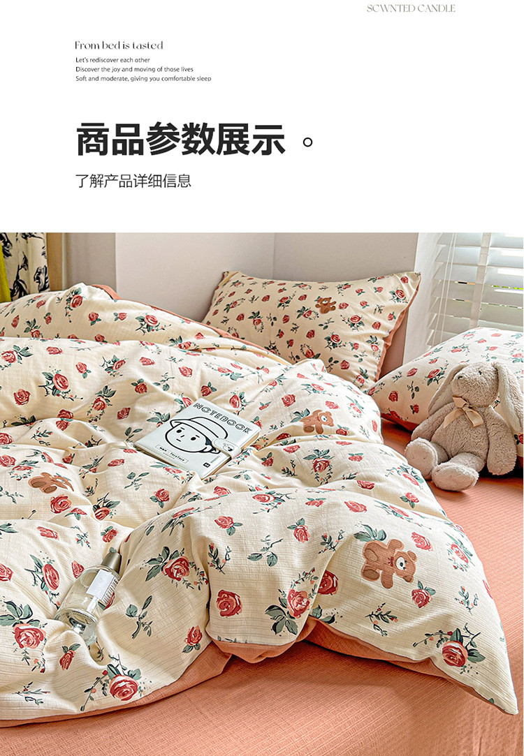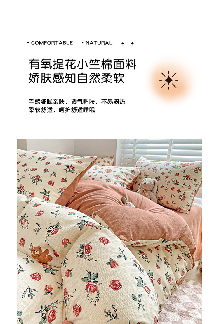 当前位置: 91家纺网 > 商品网购 > 床品套件 > 四件套 > 全棉普通四件套 > 暖芯优选2023新款超柔有氧小竺提花棉双层纱学生四件套 玫瑰小熊