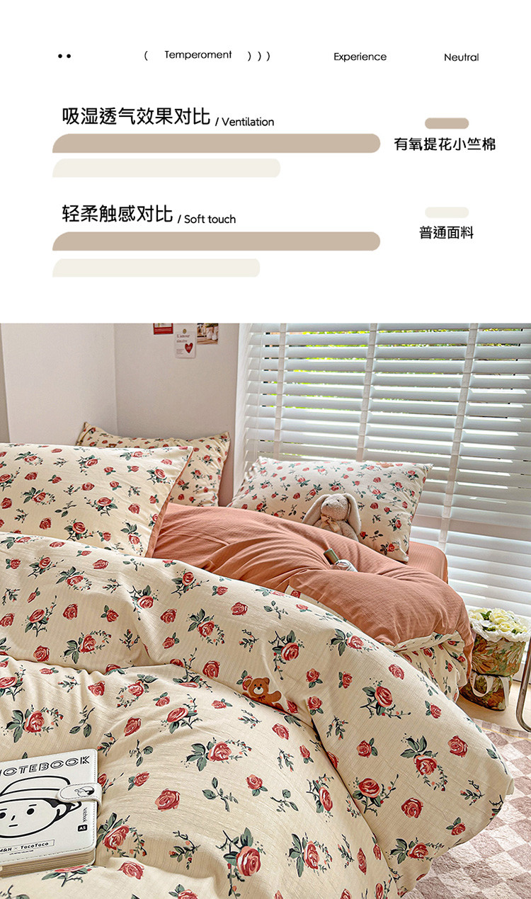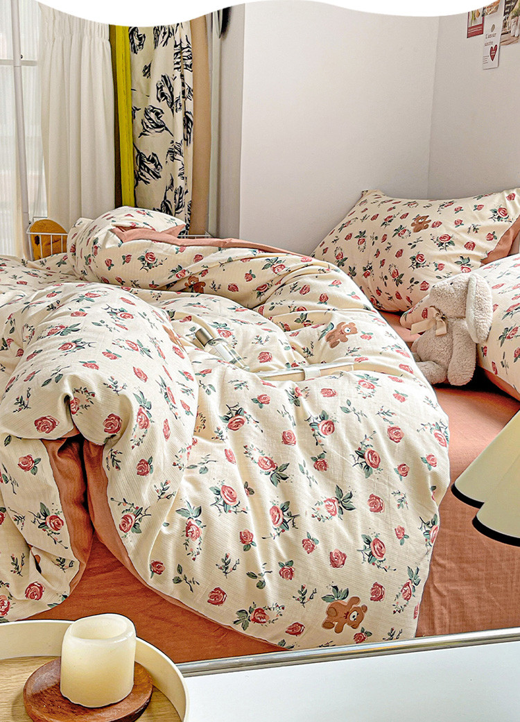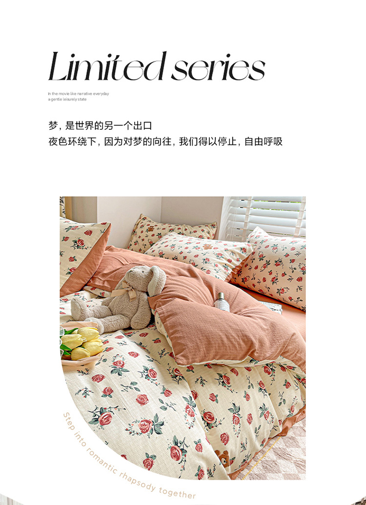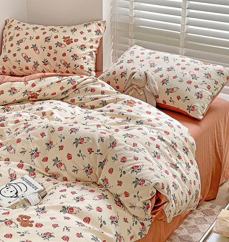 当前位置: 91家纺网 > 商品网购 > 床品套件 > 四件套 > 全棉普通四件套 > 暖芯优选2023新款超柔有氧小竺提花棉双层纱学生四件套 玫瑰小熊