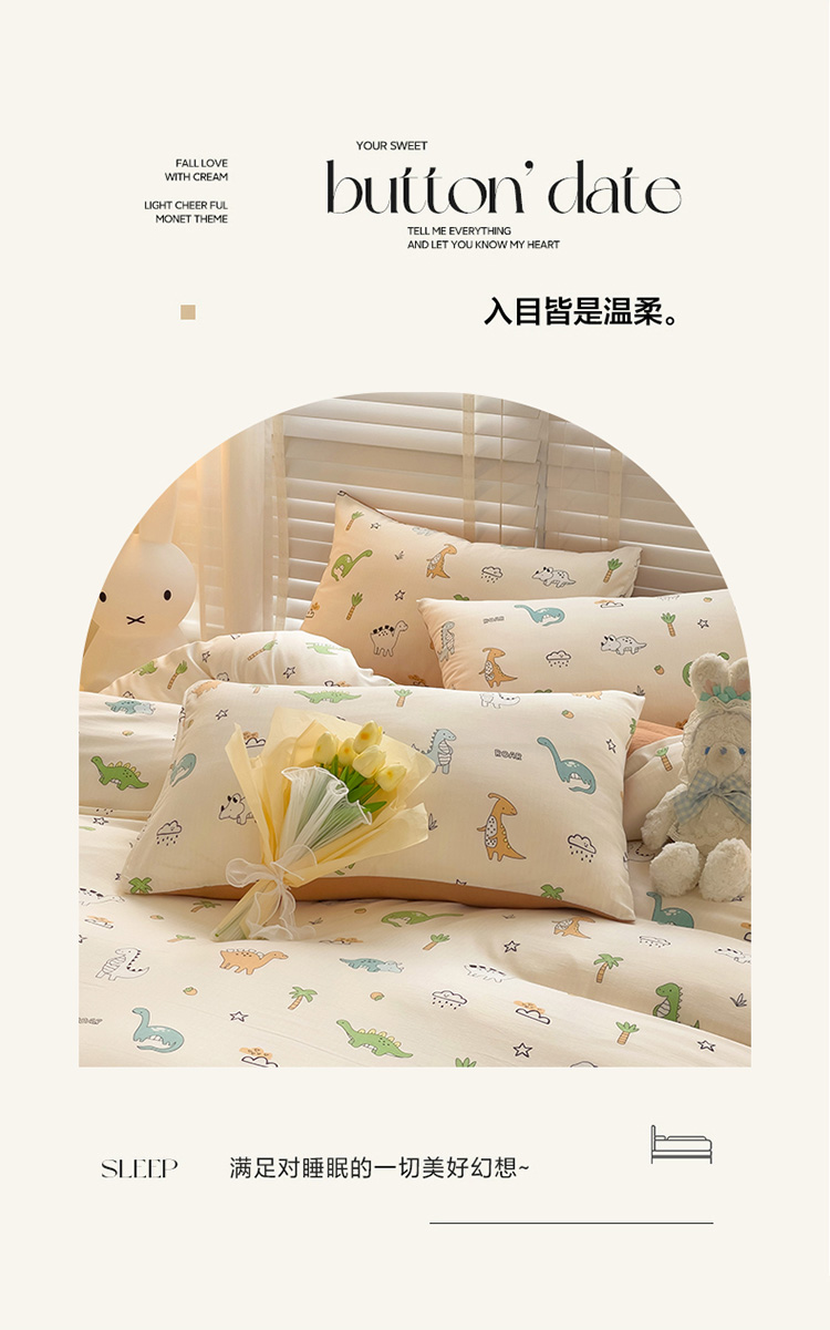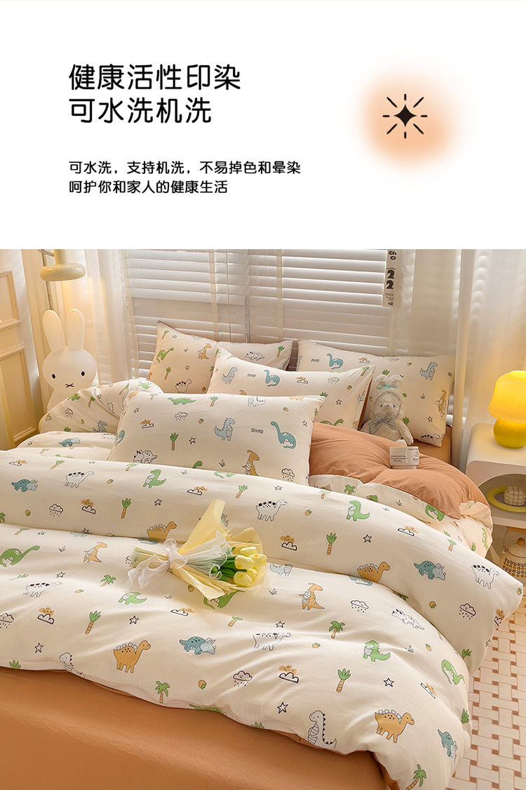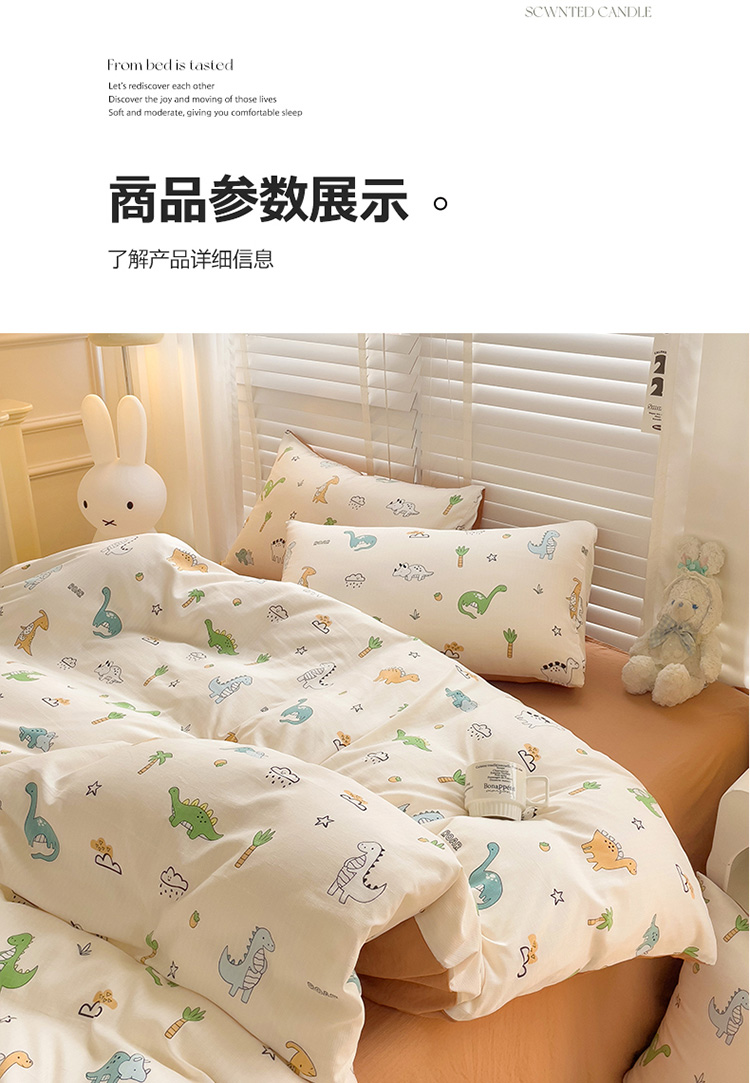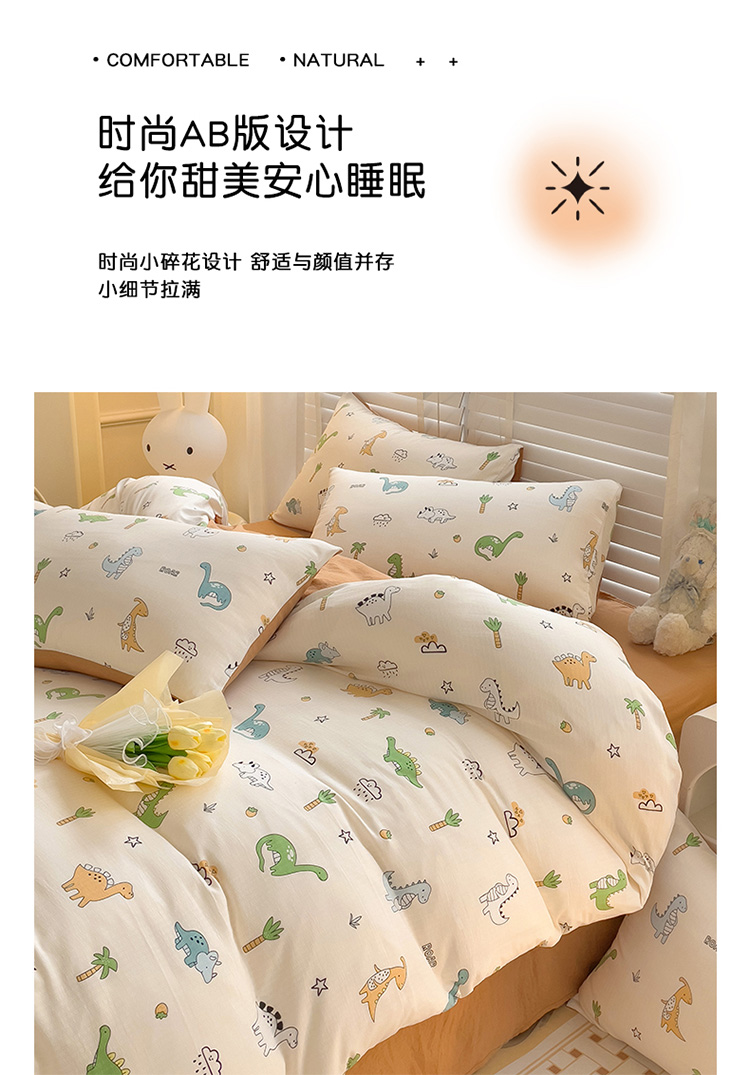 当前位置: 91家纺网 > 商品网购 > 床品套件 > 四件套 > 全棉普通四件套 > 暖芯优选2023新款超柔有氧小竺提花棉双层纱学生四件套 恐龙星球