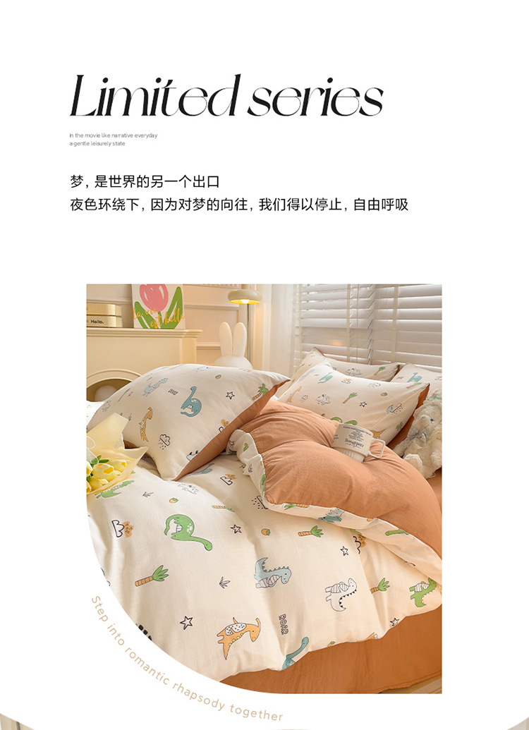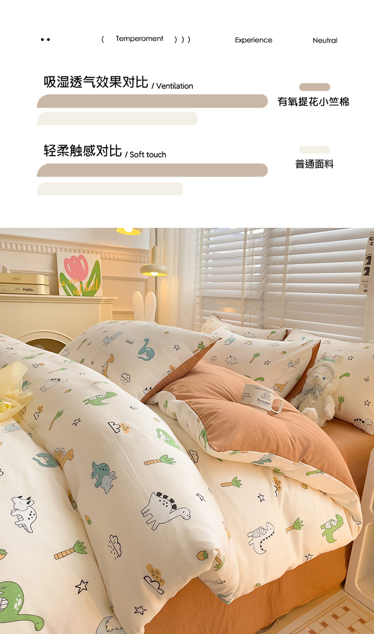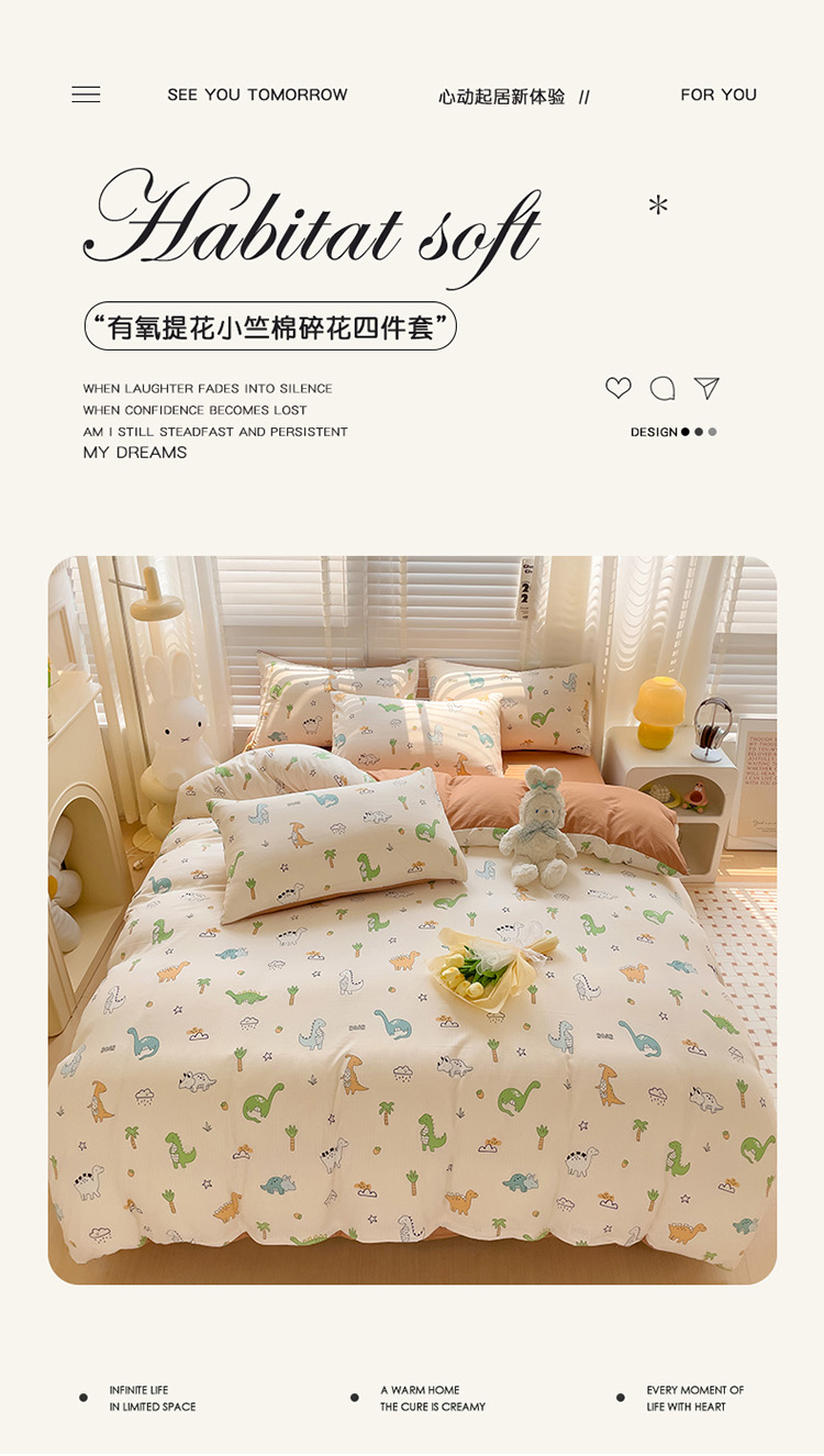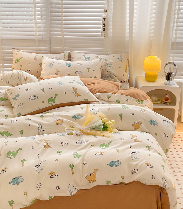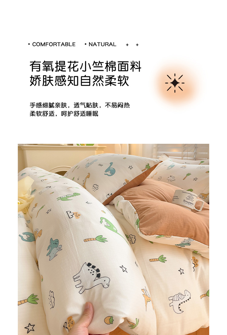 当前位置: 91家纺网 > 商品网购 > 床品套件 > 四件套 > 全棉普通四件套 > 暖芯优选2023新款超柔有氧小竺提花棉双层纱学生四件套 恐龙星球