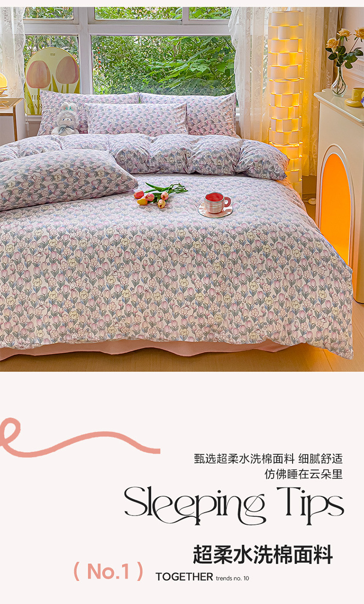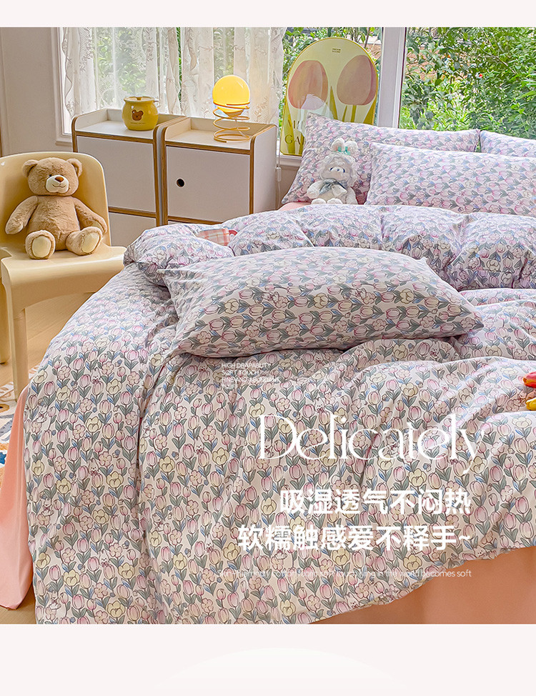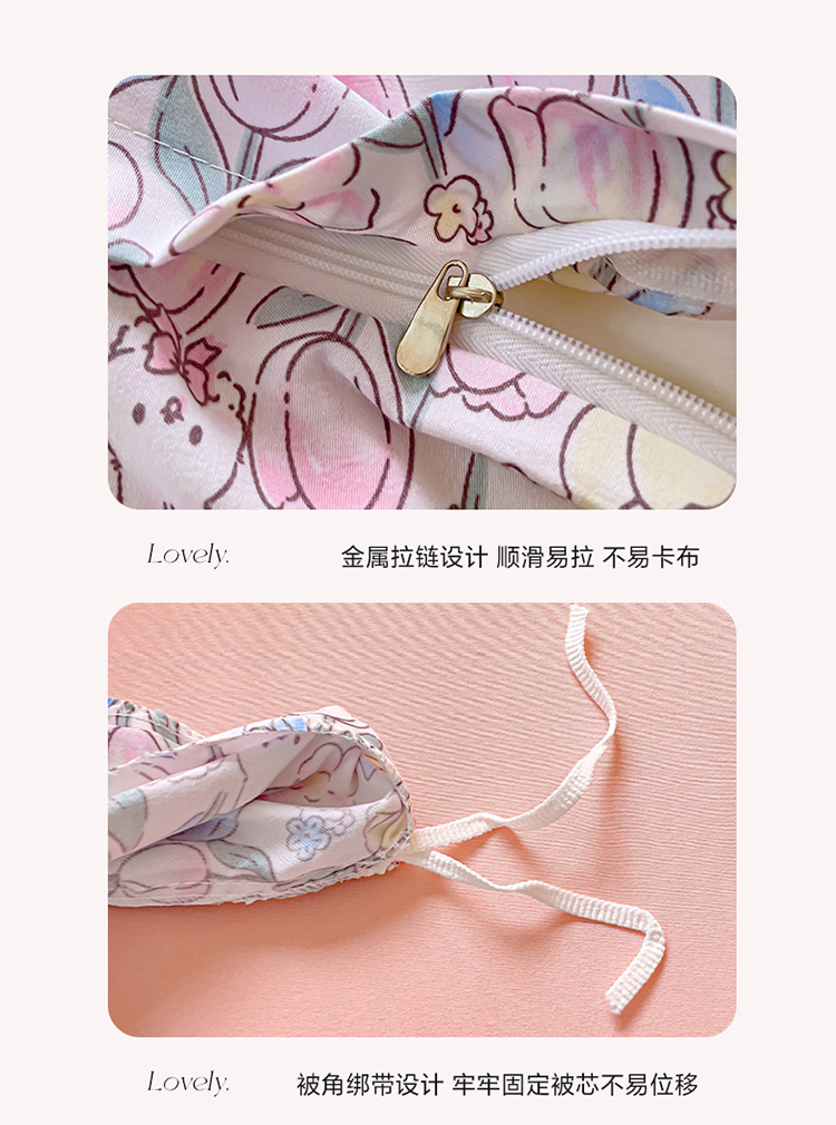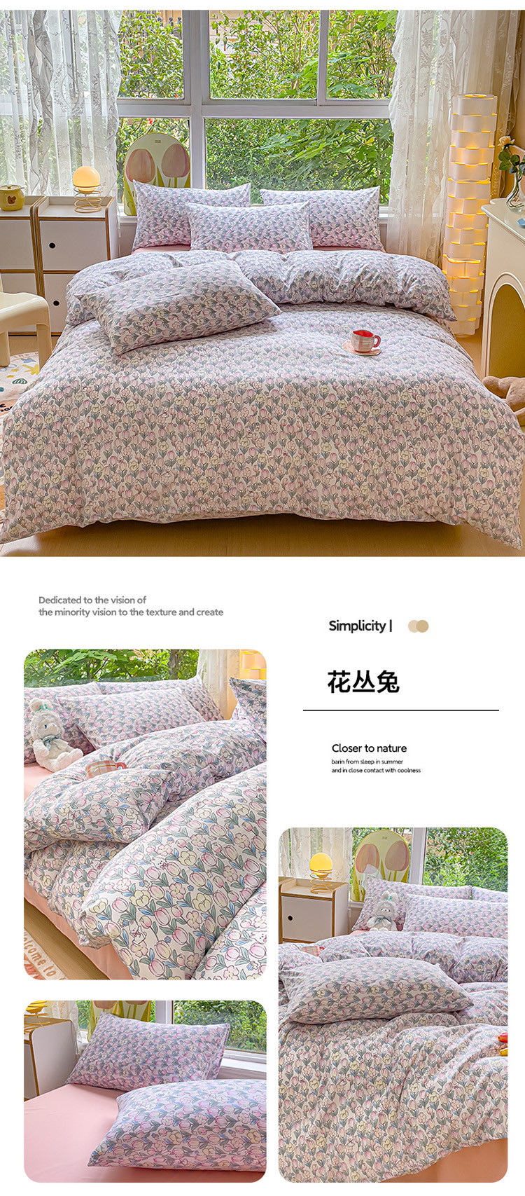 当前位置: 91家纺网 > 商品网购 > 床品套件 > 四件套 > 全棉普通四件套 > 暖芯优选 2023直播热款超柔水洗棉双层纱四件套 花丛兔