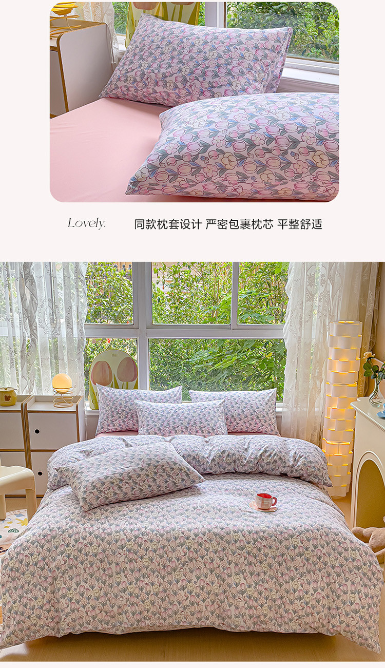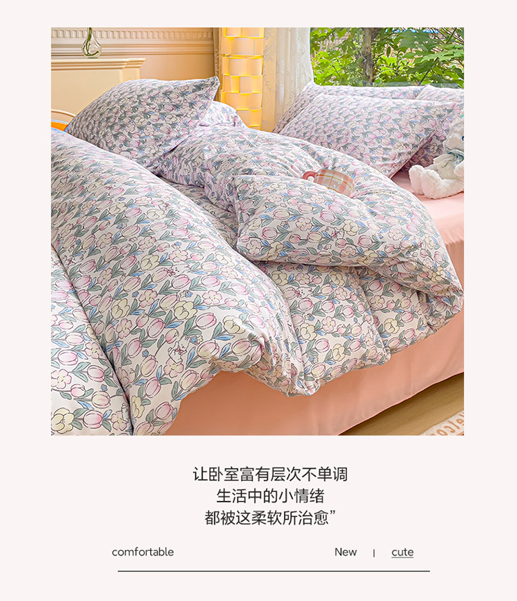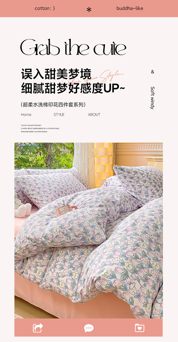 当前位置: 91家纺网 > 商品网购 > 床品套件 > 四件套 > 全棉普通四件套 > 暖芯优选 2023直播热款超柔水洗棉双层纱四件套 花丛兔