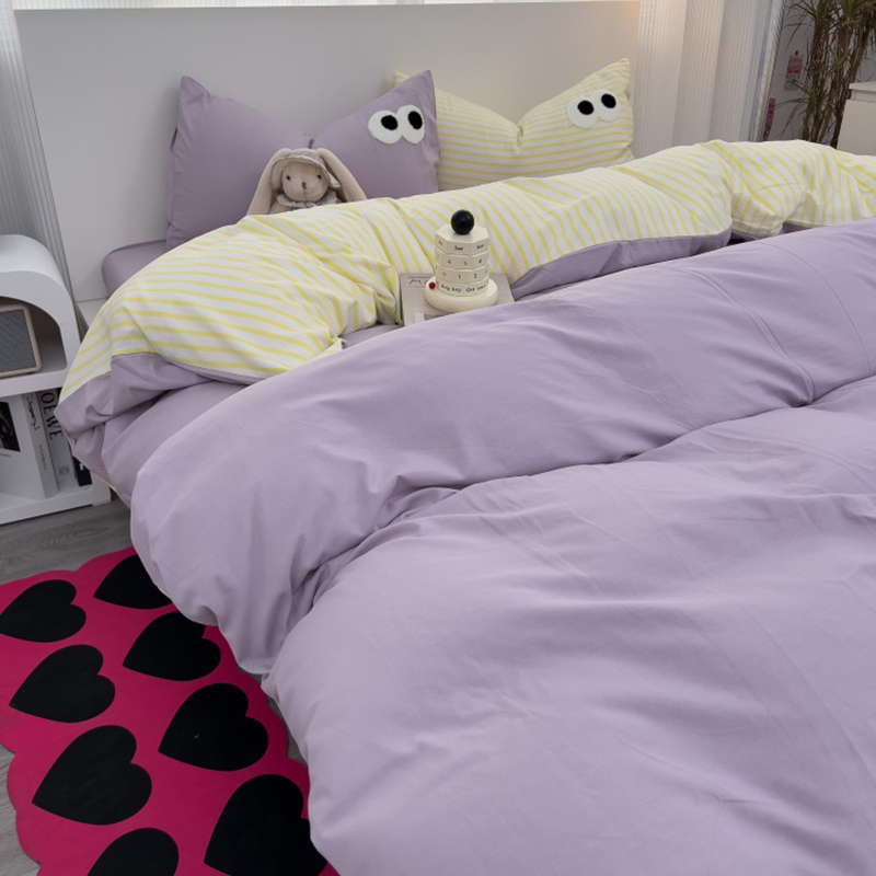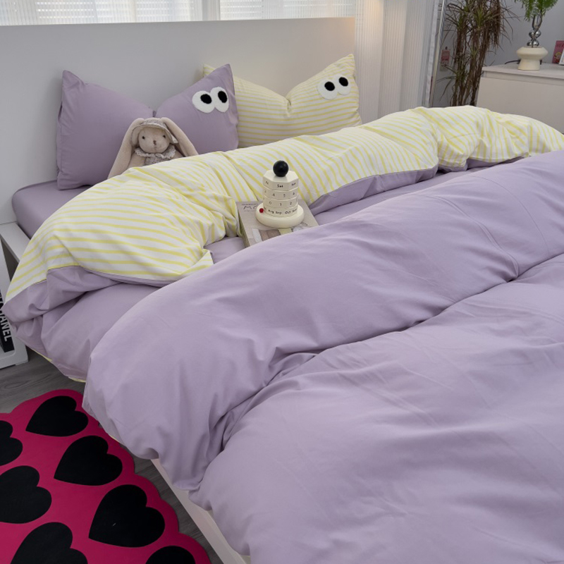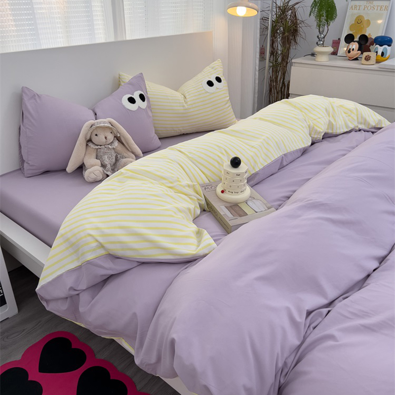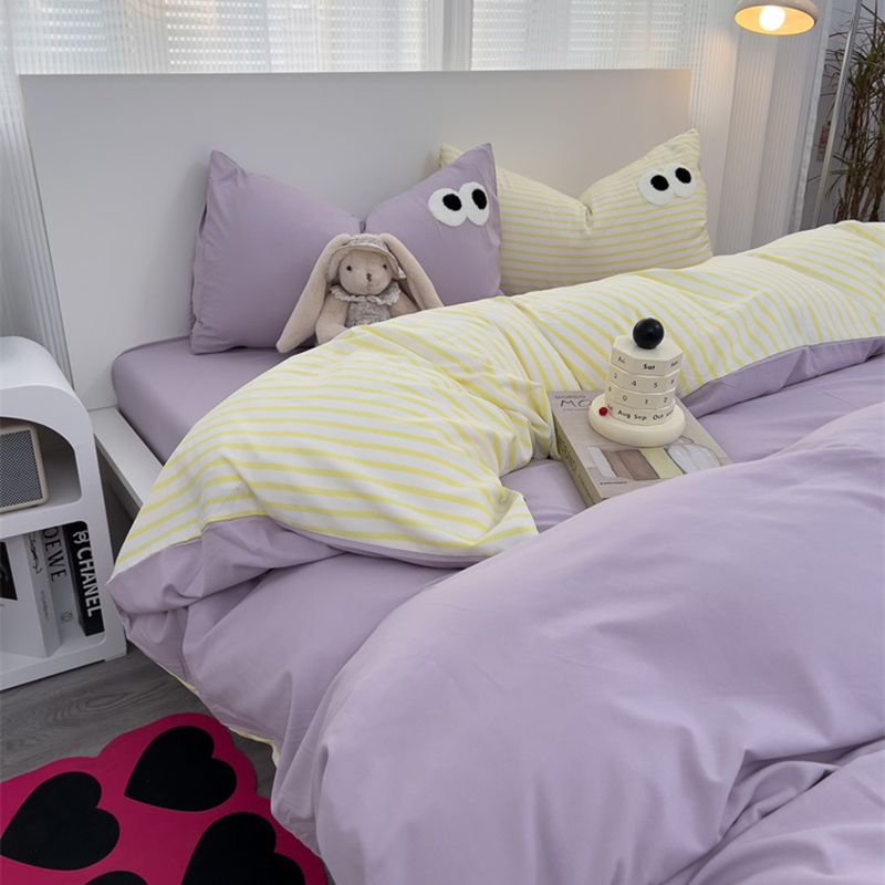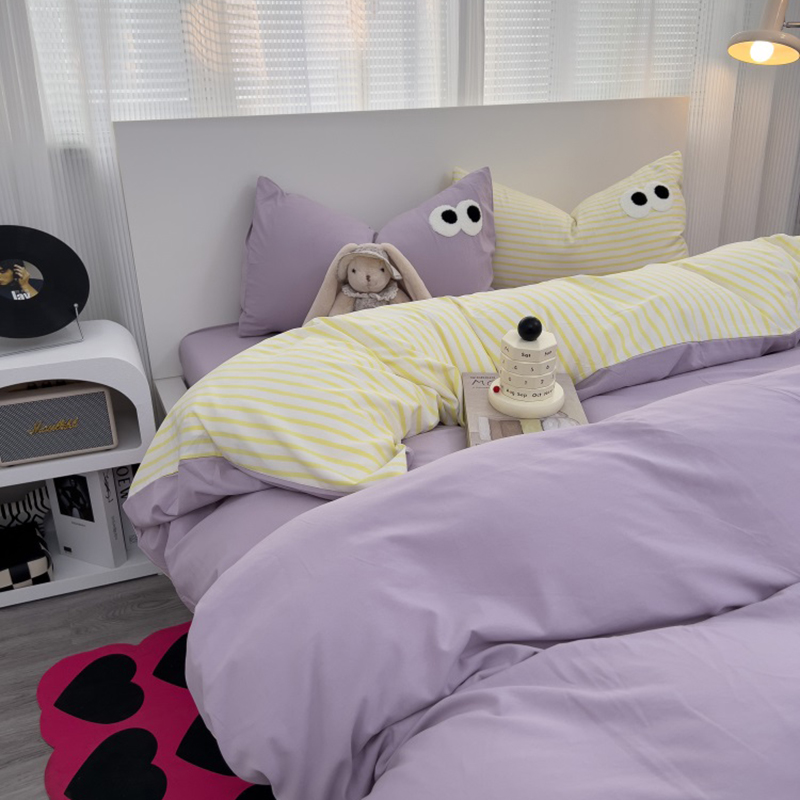 当前位置: 91家纺网 > 商品网购 > 床品套件 > 四件套 > 水洗棉四件套 > 奈颜 2023新款爆款水洗棉多巴胺混搭大眼毛巾绣四件套--条纹大眼(手机实拍图) 仙紫+条纹黄