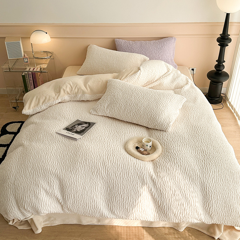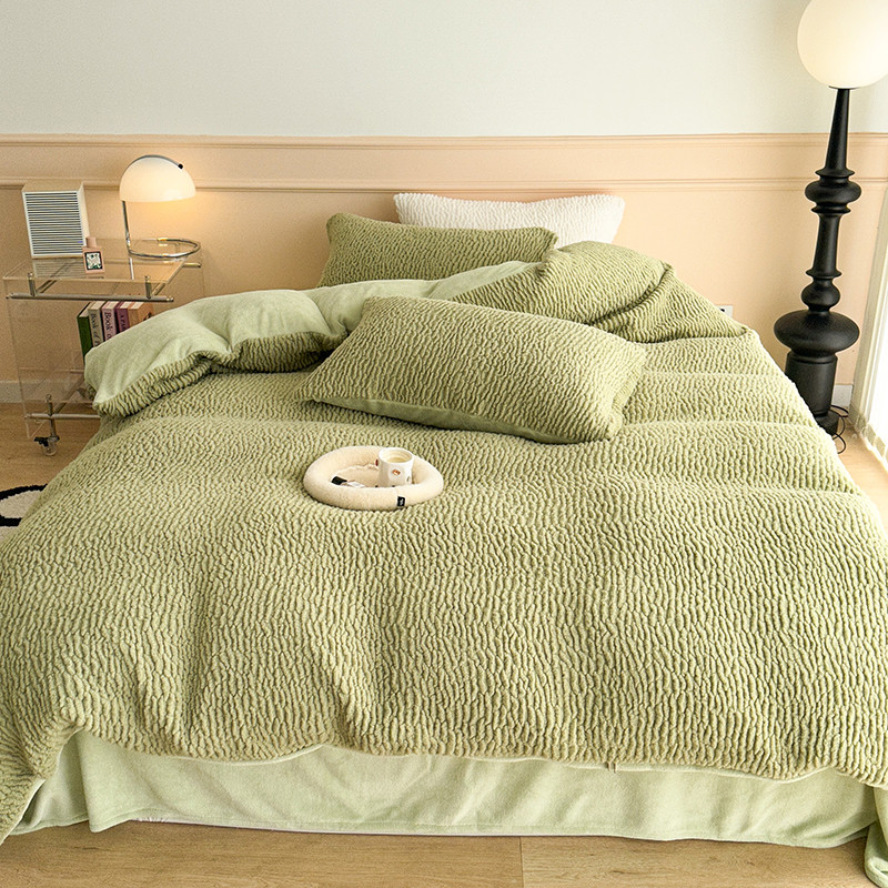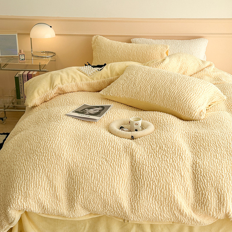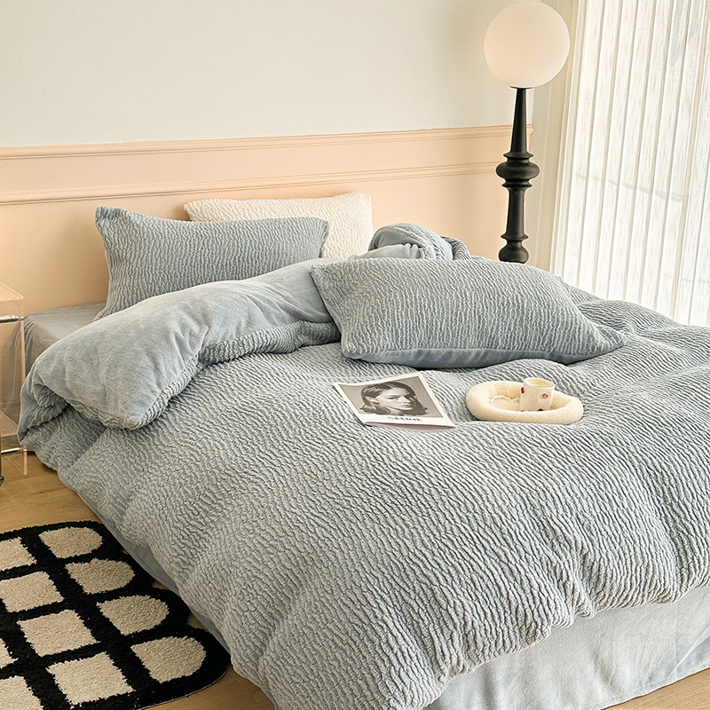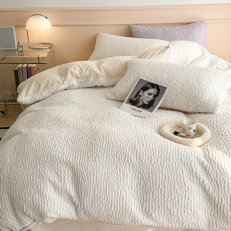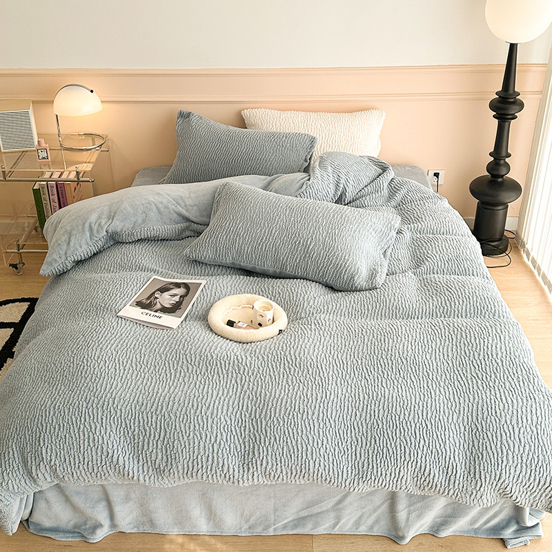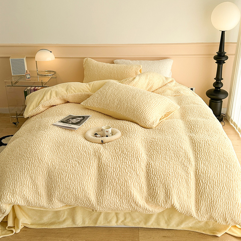 (总)昔可 2023新款纯色泡芙云朵绒四件套
