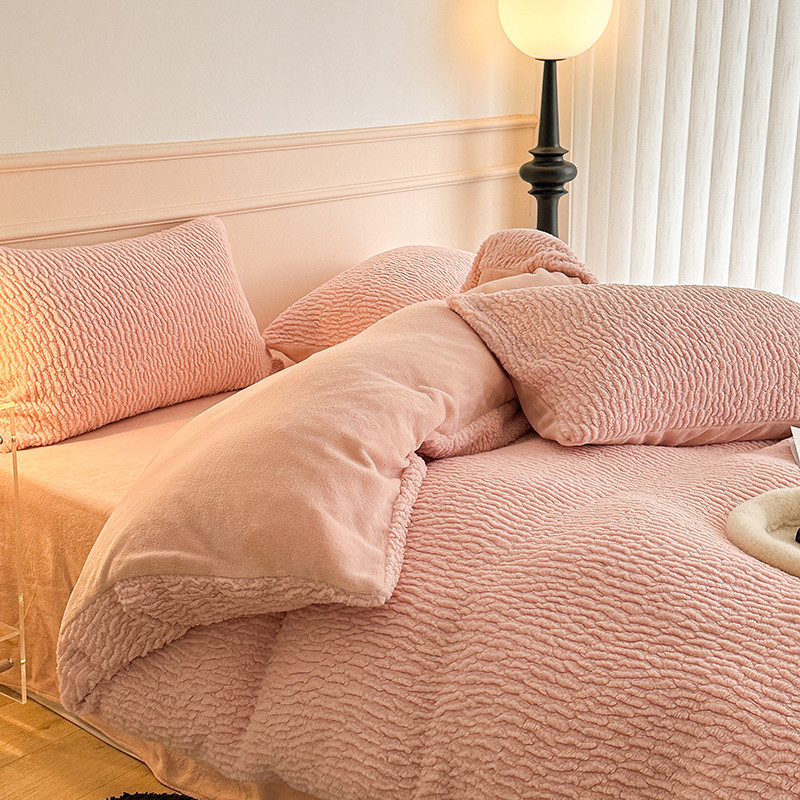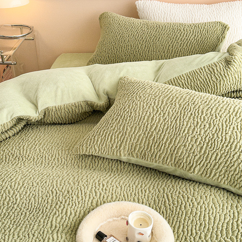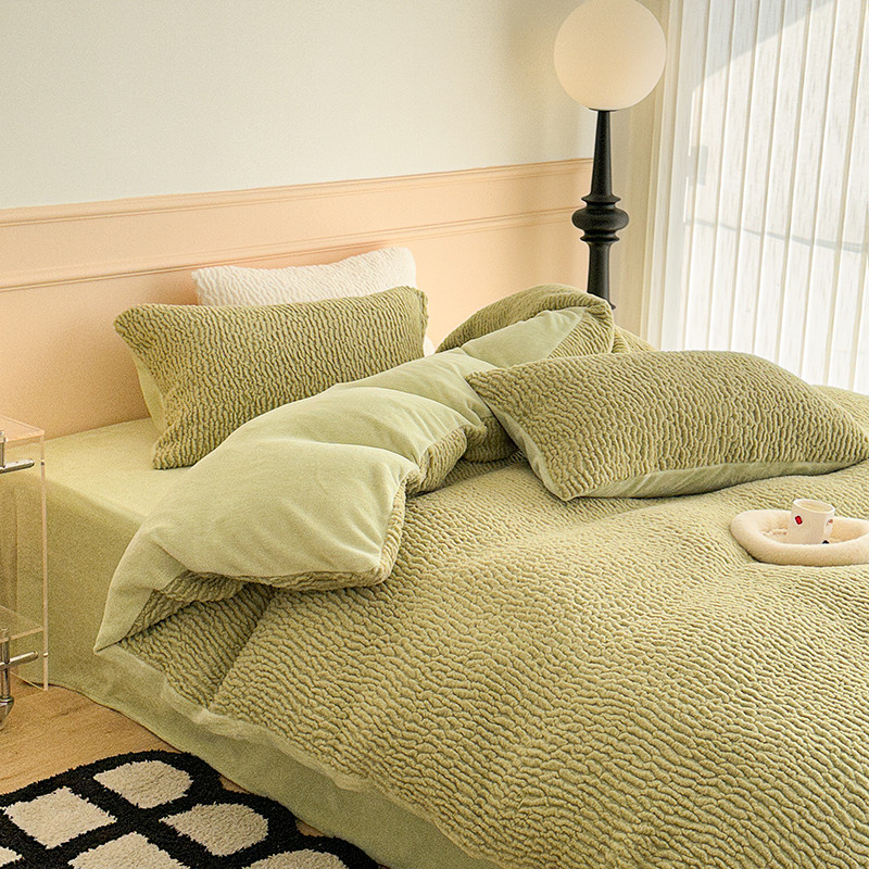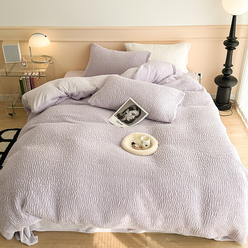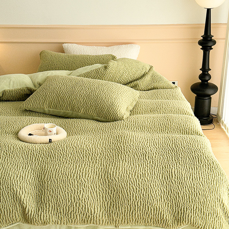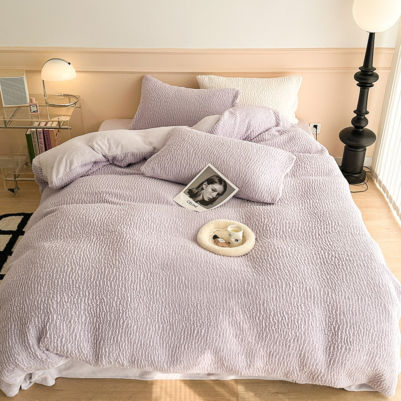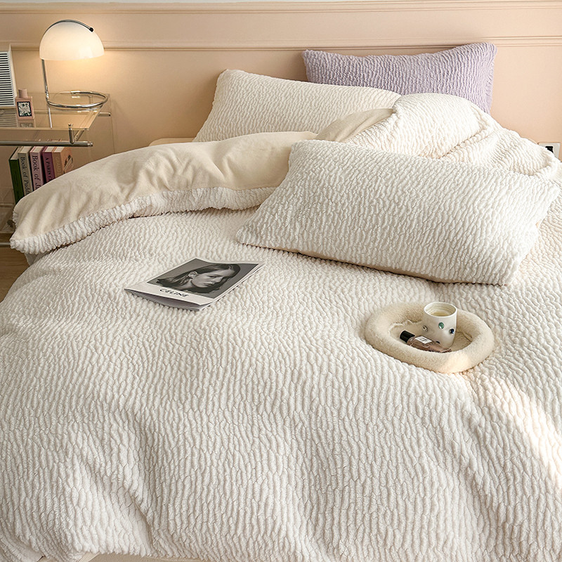 (总)昔可 2023新款纯色泡芙云朵绒四件套