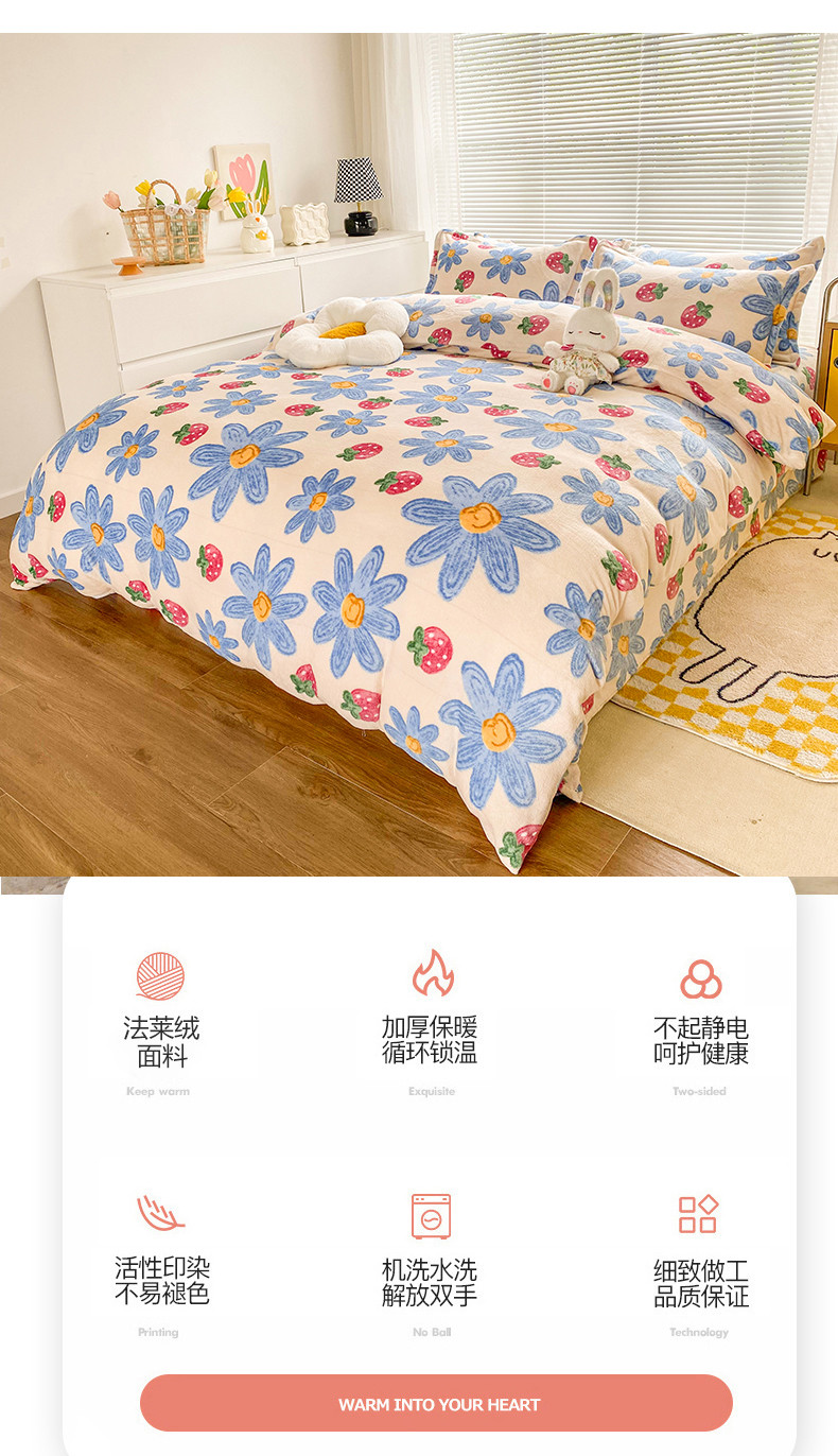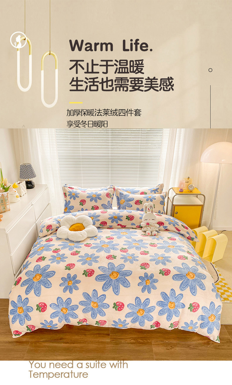 当前位置: 91家纺网 > 商品网购 > 床品套件 > 四件套 > 法莱绒四件套 > 妖妖家纺 2023新款 法莱绒加厚保暖四件套幸运花