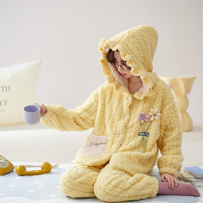 (总)洛兰沙家居馆 2024新款清新款睡衣女秋冬三层夹棉珊瑚绒加厚保暖两件套女士可外穿加绒家居服,99078,99077,99064,99065,99076,99063,99062