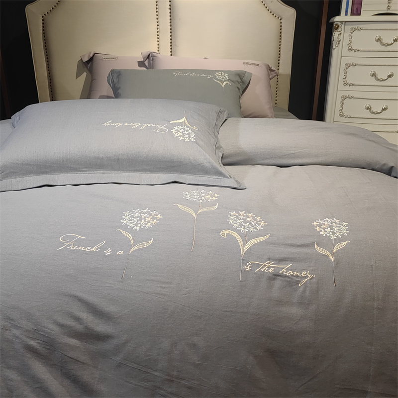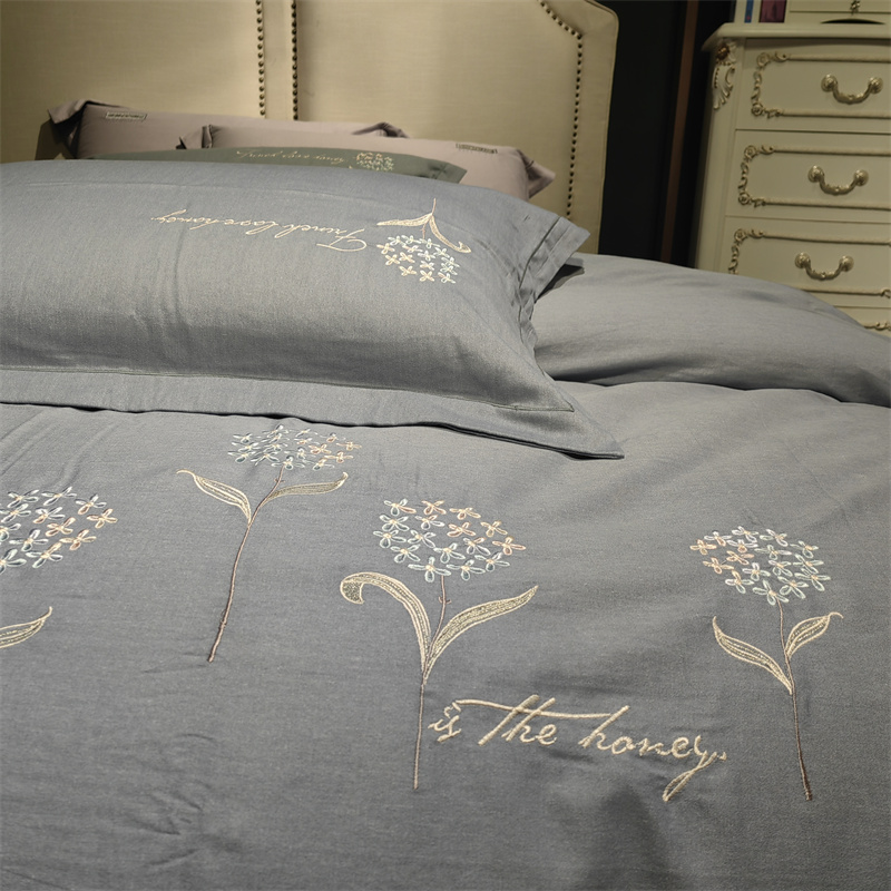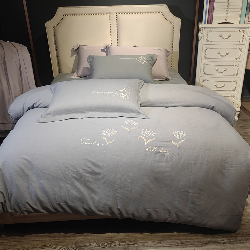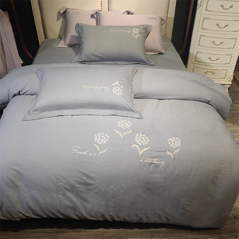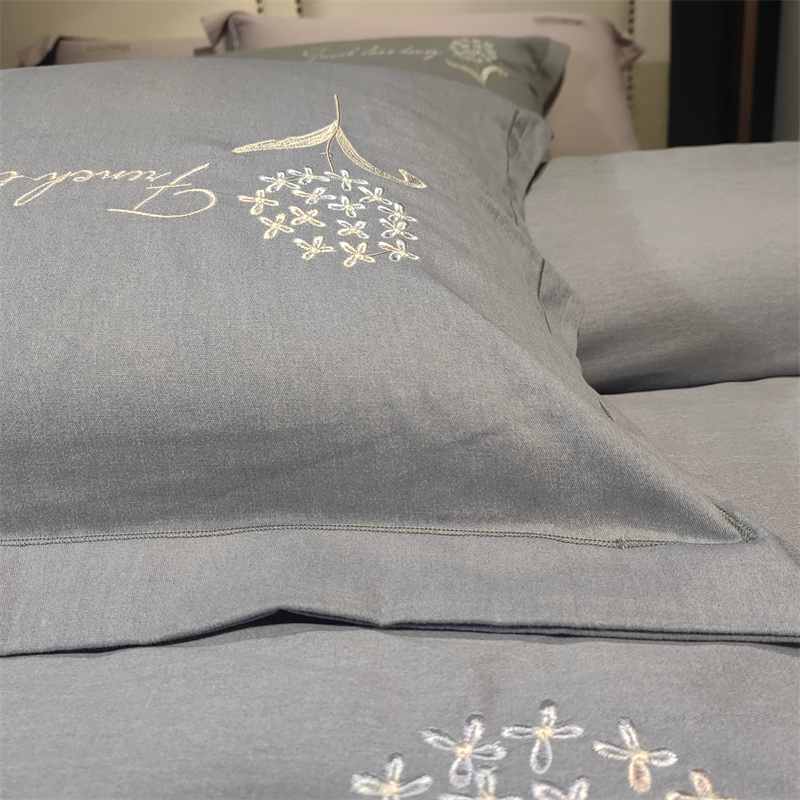 玖玖爱 2023新款碳素磨毛刺绣款四件套 弗莱维亚高级灰