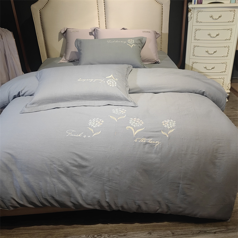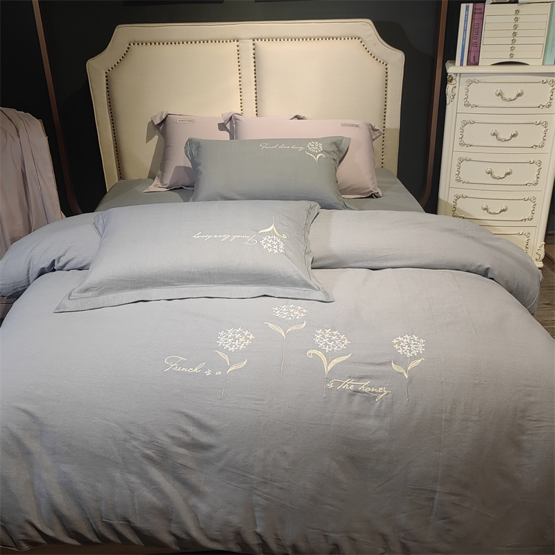 总玖玖爱家纺 纯棉100支贡缎长绒棉刺绣被套三件套四件套加大四件套,白色,高级灰,卡其,蓝灰,绿色,浅桔,深蓝,紫豆沙