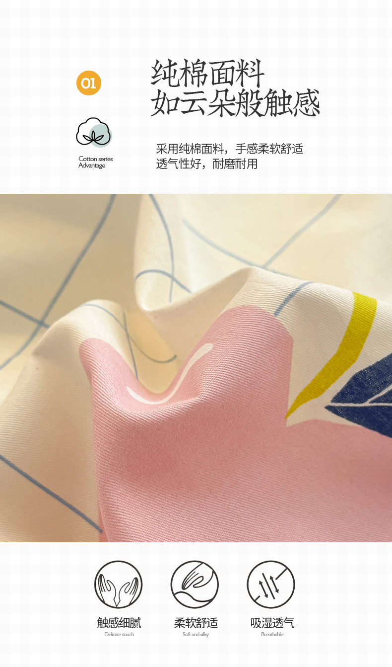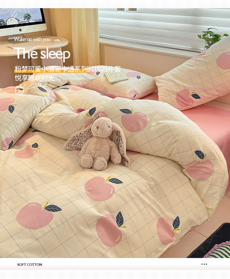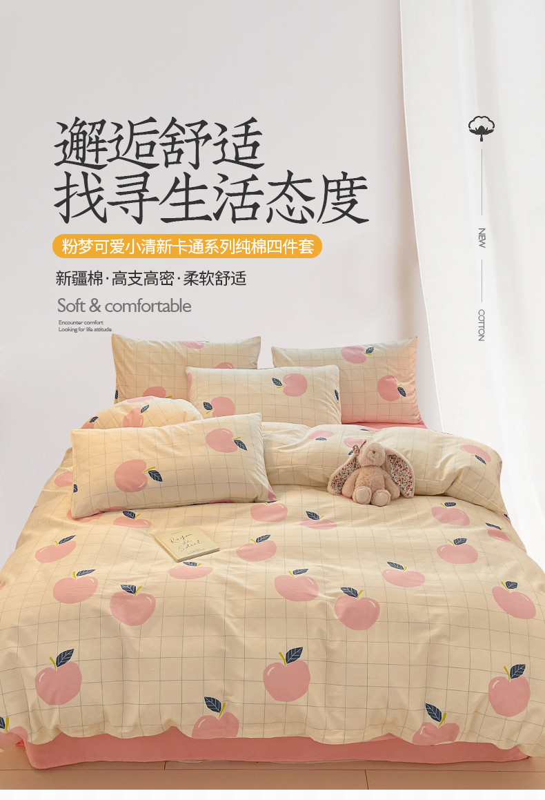 商品名称:桃子家居 2024新款纯棉13372粉梦可爱小清新卡通系列四件套 棉-蜜桃少女