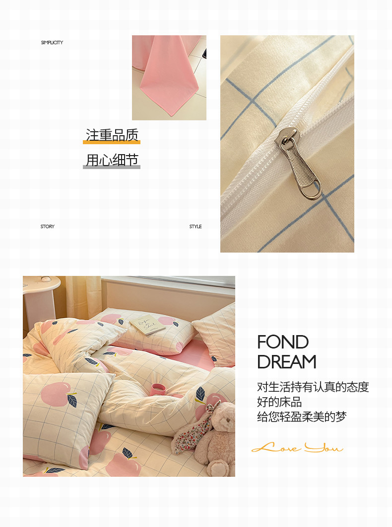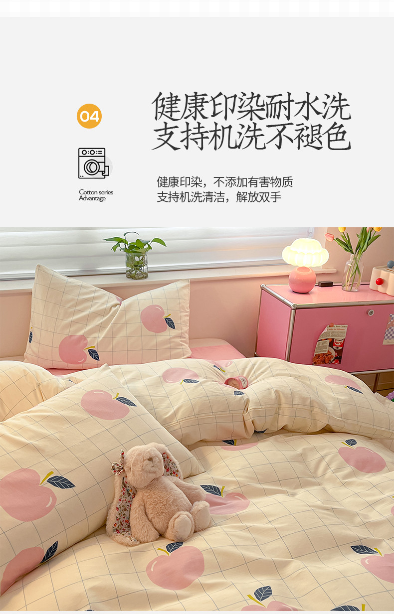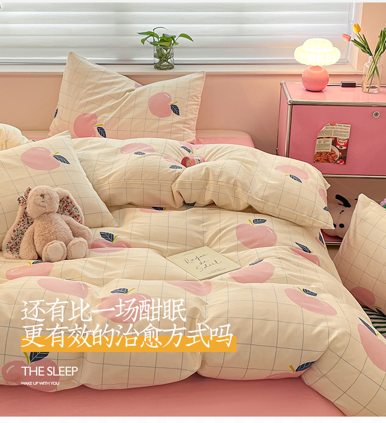 桃子家居 2024新款纯棉13372粉梦可爱小清新卡通系列四件套 棉-蜜桃少女