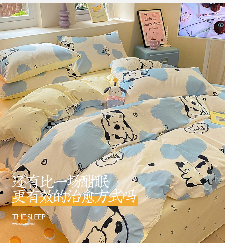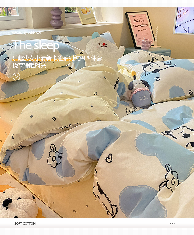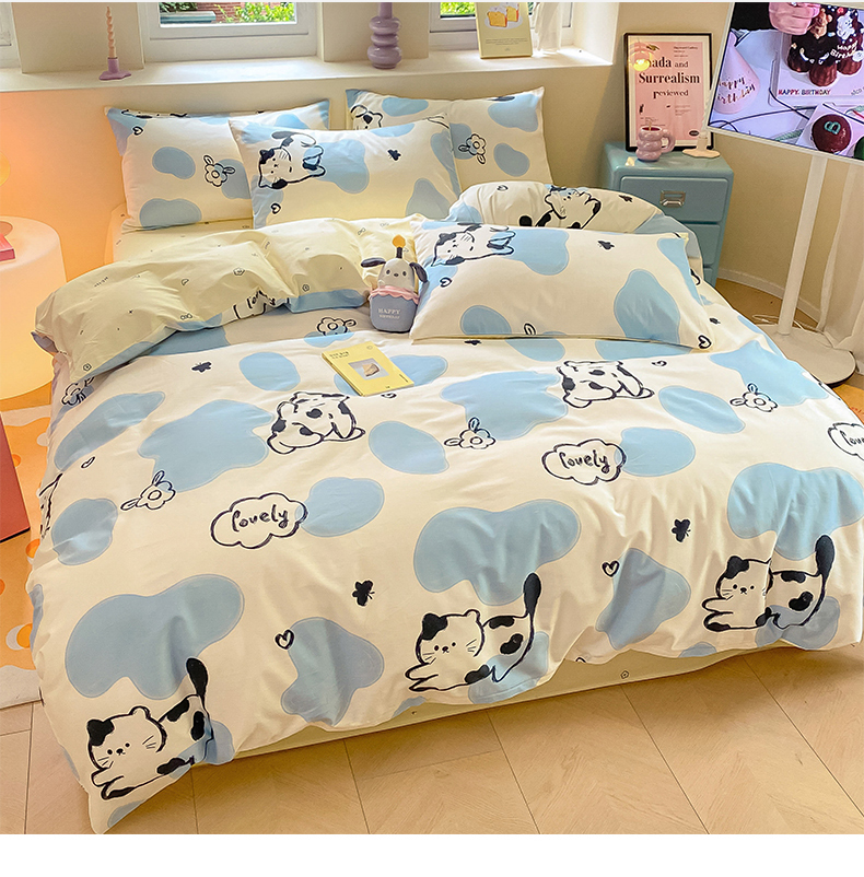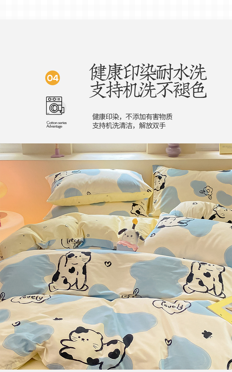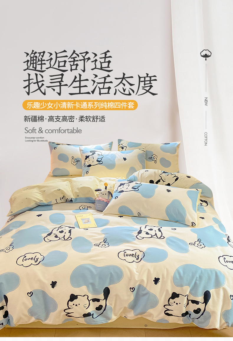 桃子 2024新款纯棉13372萌趣少女小清新卡通四件套第二批 棉-奶牛猫