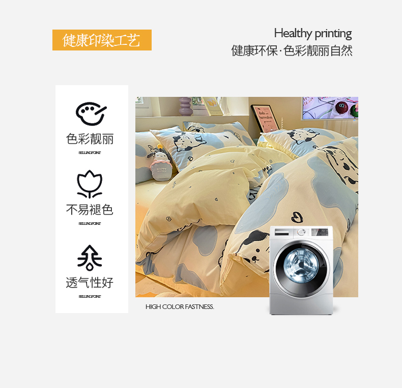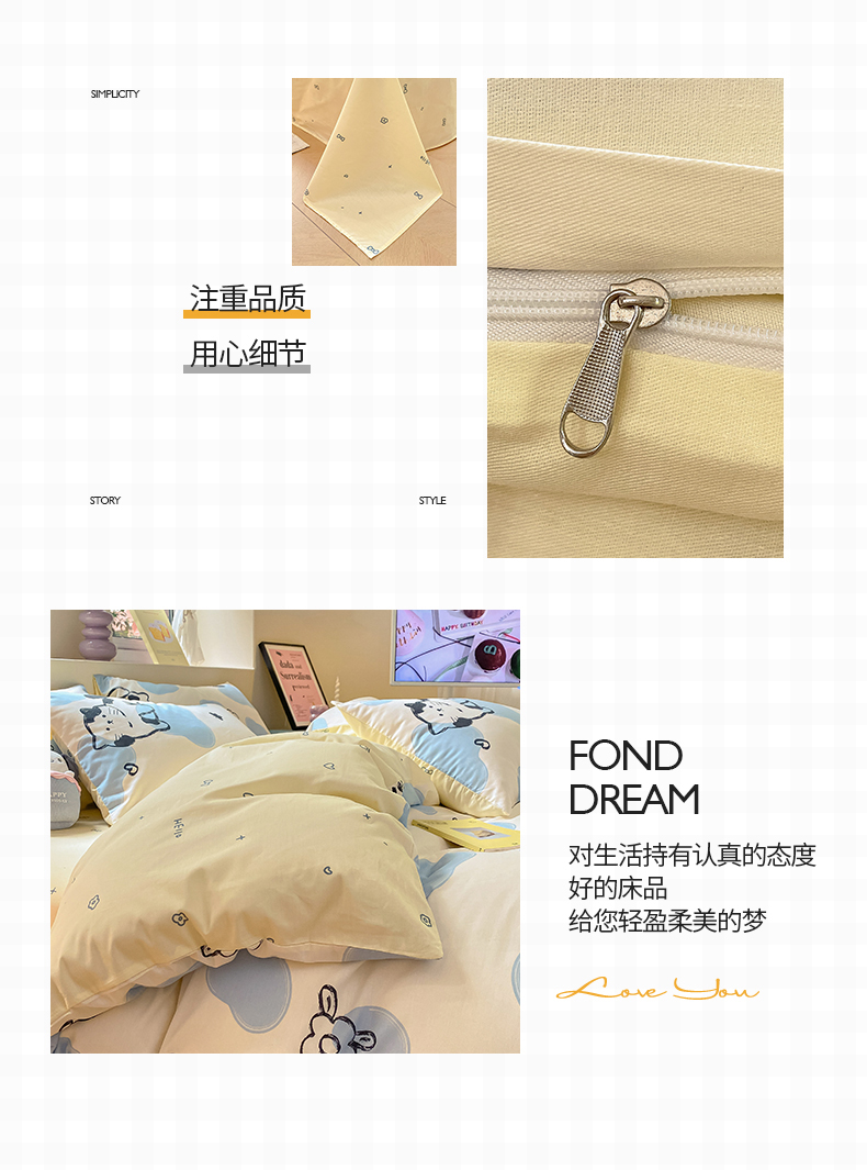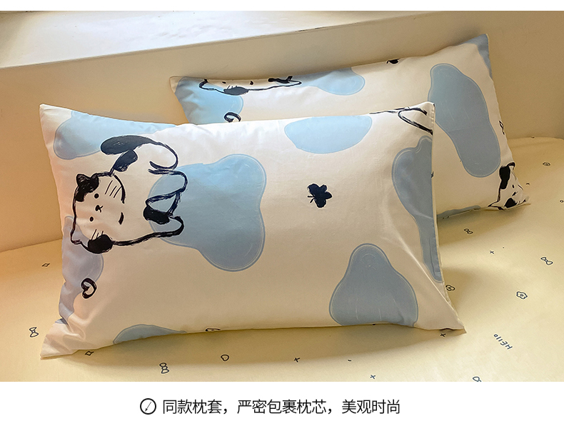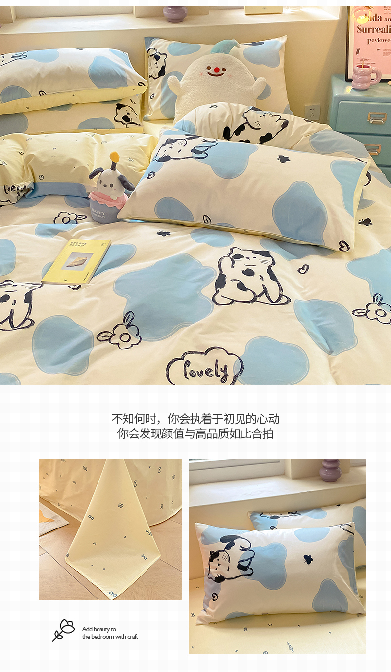 商品名称:桃子 2024新款纯棉13372萌趣少女小清新卡通四件套第二批 棉-奶牛猫