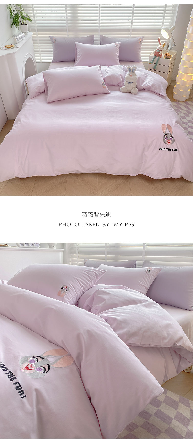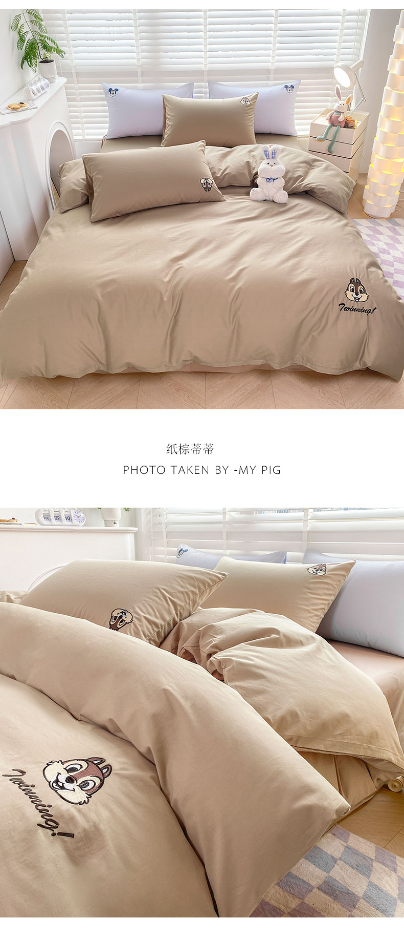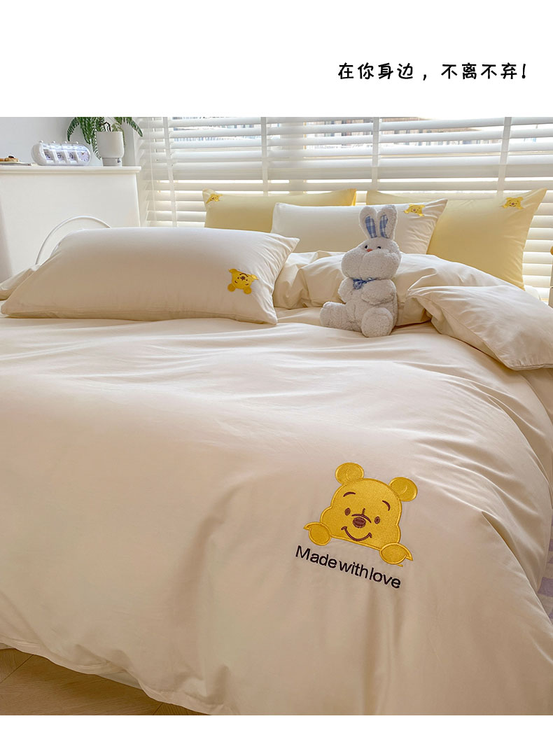 商品名称:猪先生 2024新款迪士尼全棉40支水洗棉绣花四件套 杏仁白维尼