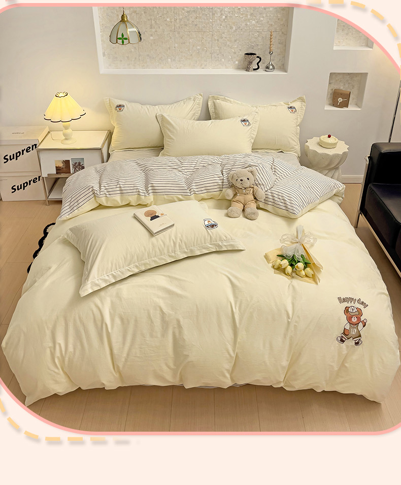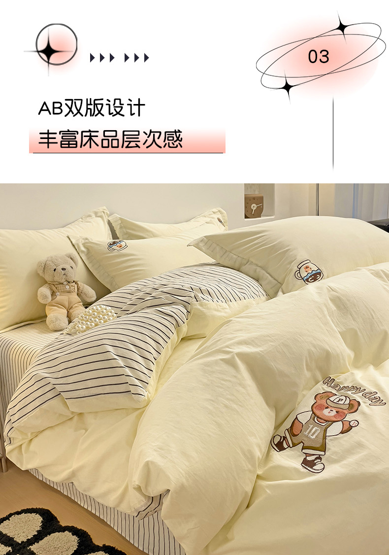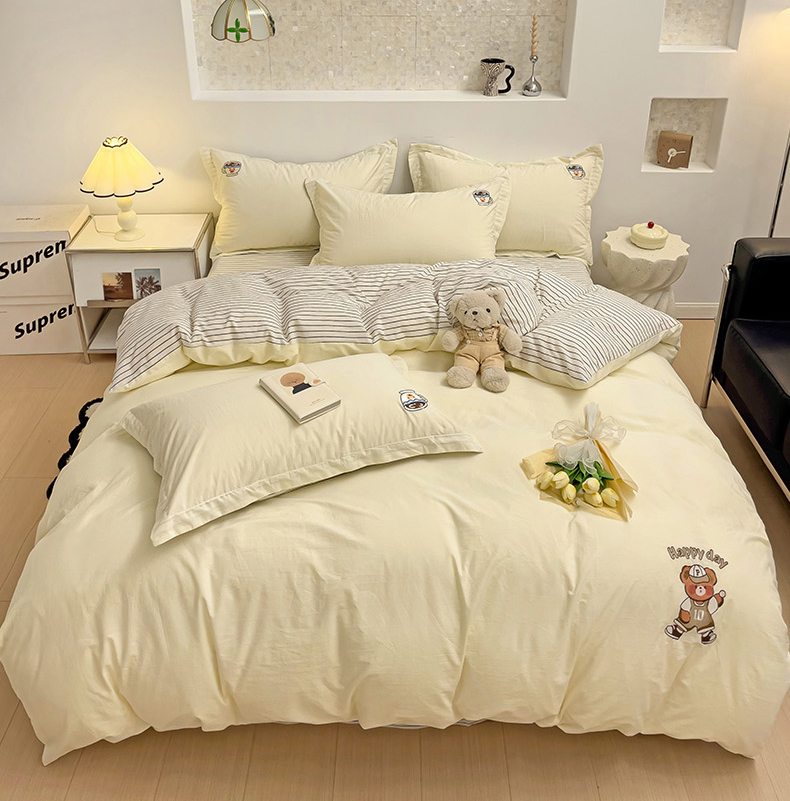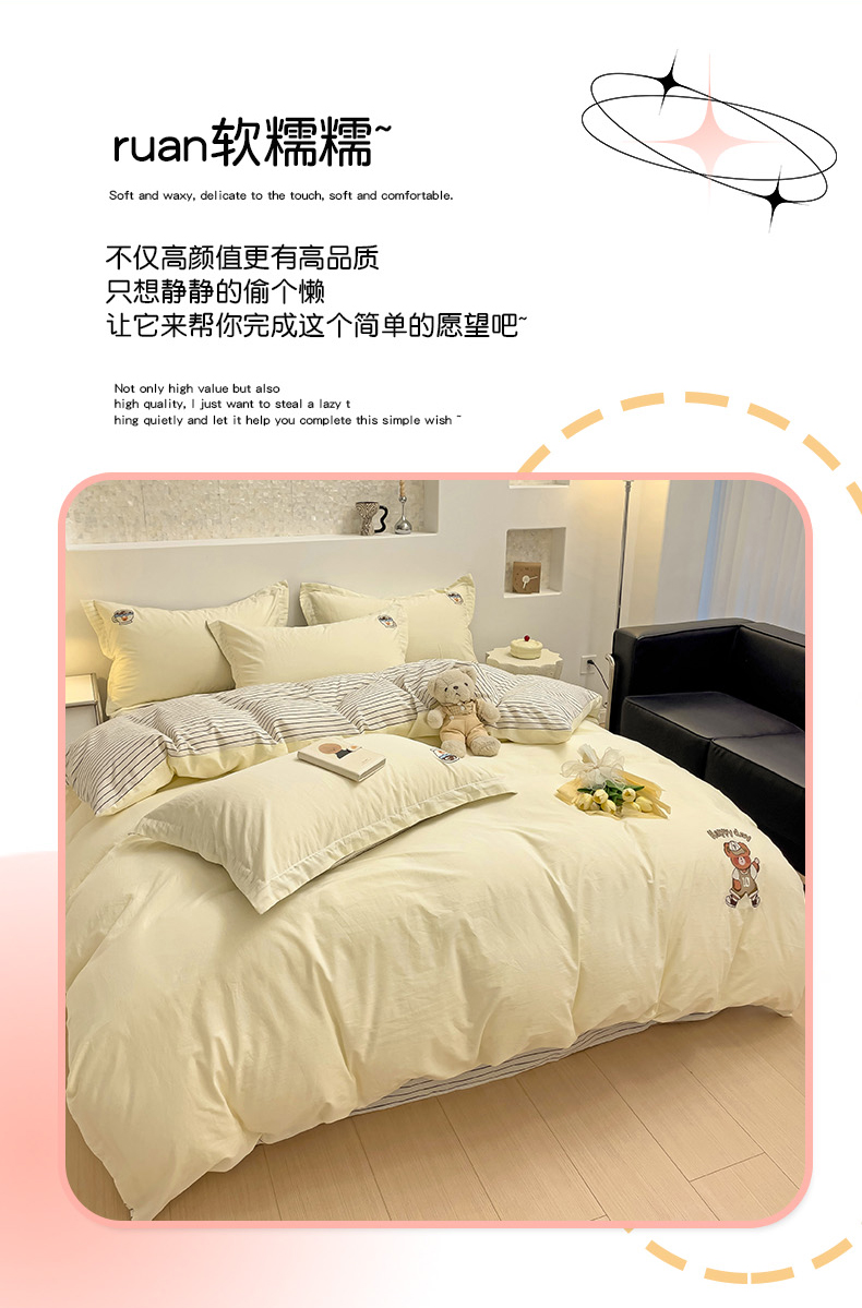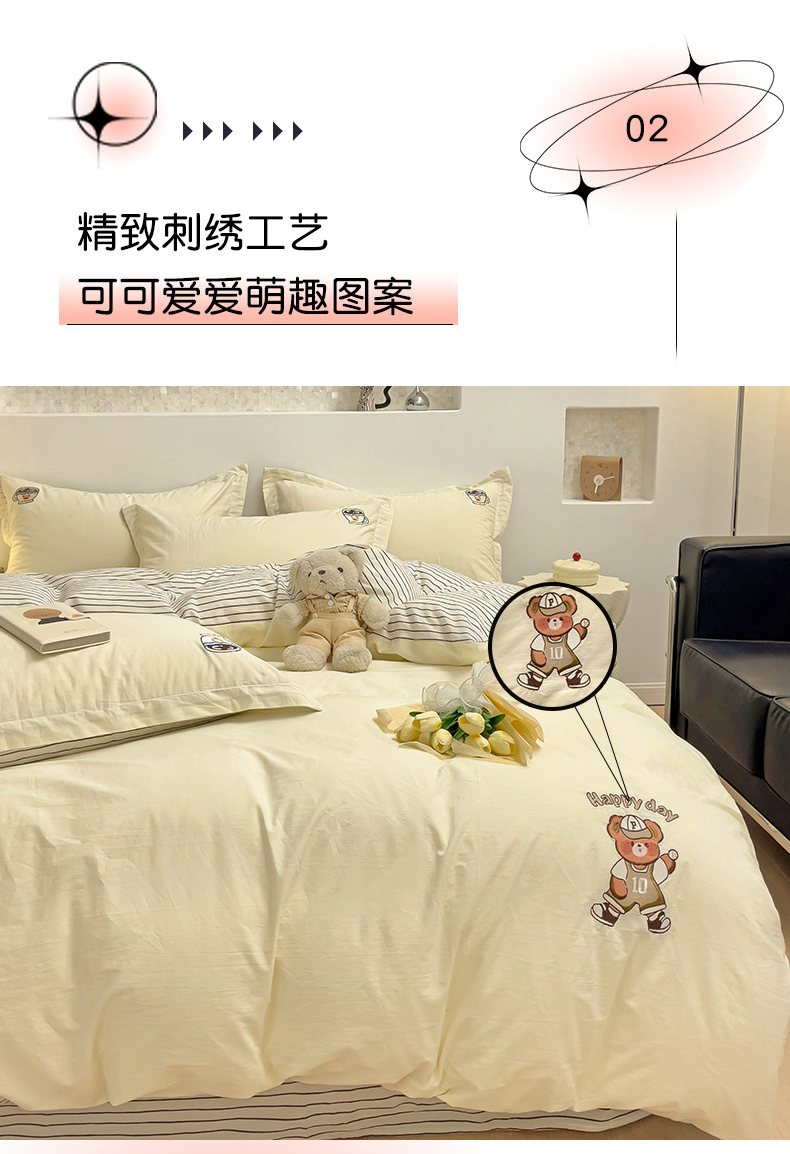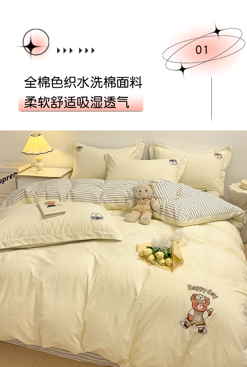 娜娜 2024新款全棉色织水洗棉套件 维尼熊-奶昔白