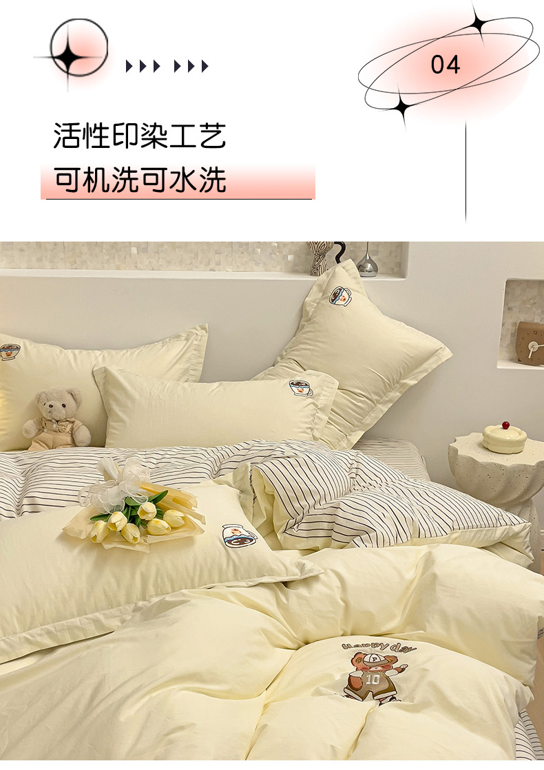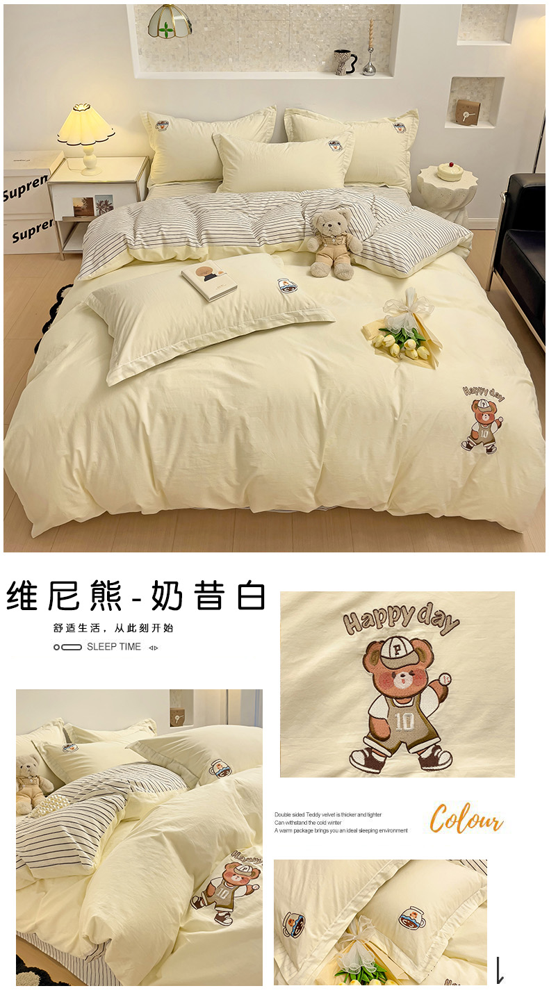 商品名称:娜娜 2024新款全棉色织水洗棉套件 维尼熊-奶昔白