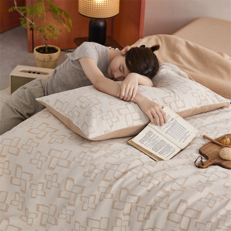 (总)简家居 2025新款20%亚麻80%棉棉麻提花四件套-法颂,法颂