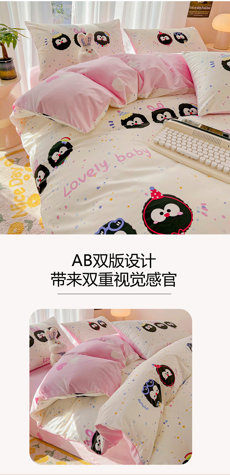 (总)倾慕家纺 2025新款卡通毛巾绣加厚保暖牛奶绒四件套,爱心女孩,咖啡小狗,猫咪熊兔,迷你小车,圣诞树熊,音乐企鹅