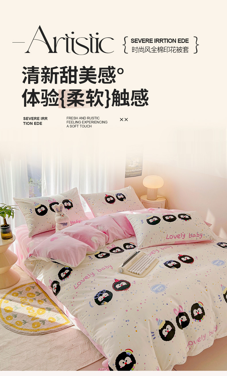 商品名称:倾慕家纺 2024新款时尚风全棉13070亲肤印花系列单被套 曲奇饼干