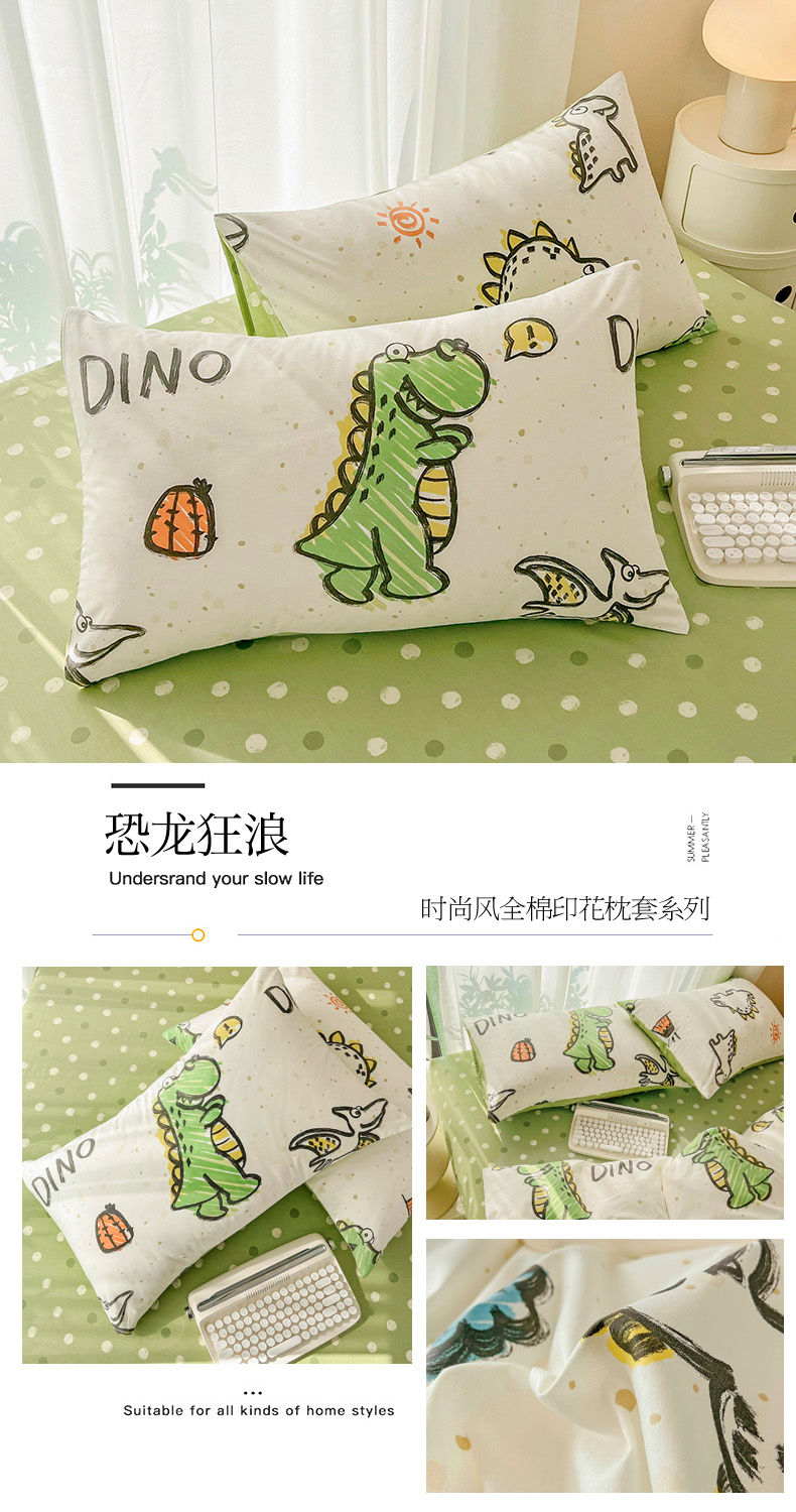 商品名称:倾慕家纺 2024新款时尚风全棉13070亲肤印花系列单枕套 恐龙狂浪