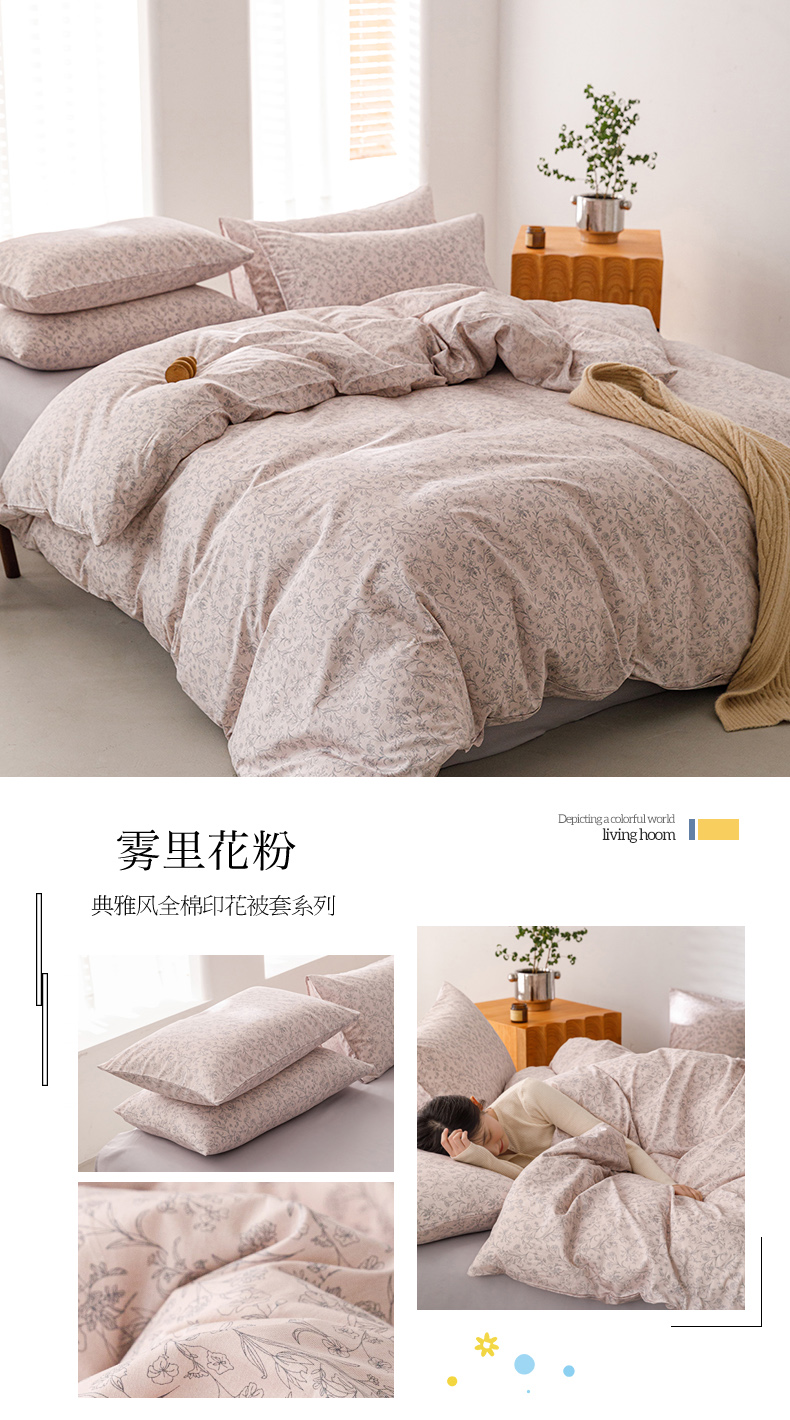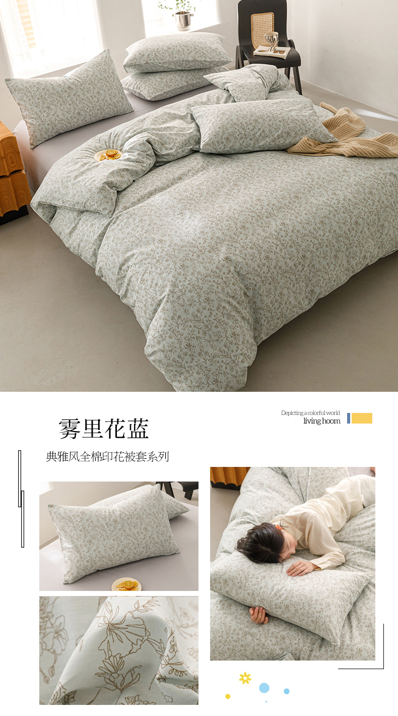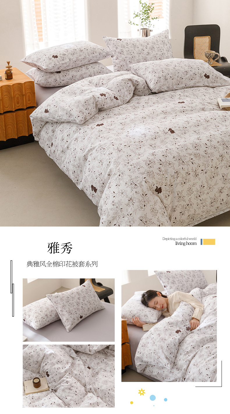 (总)倾慕家纺 2024新款典雅风全棉13370简约印花系列单被套