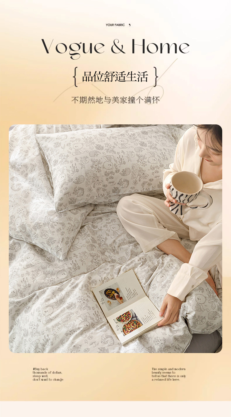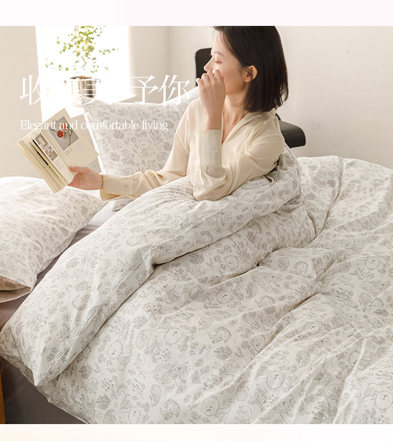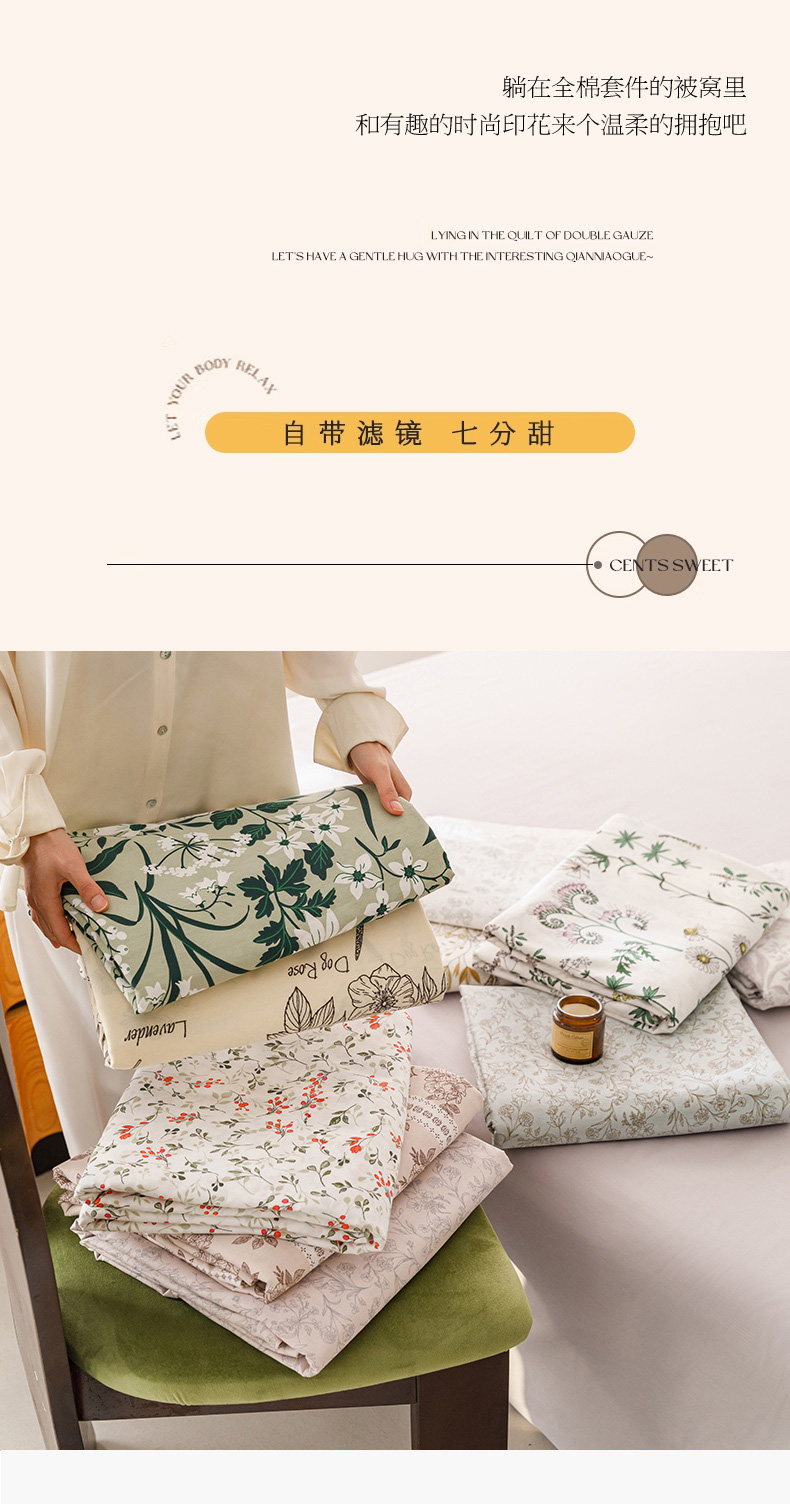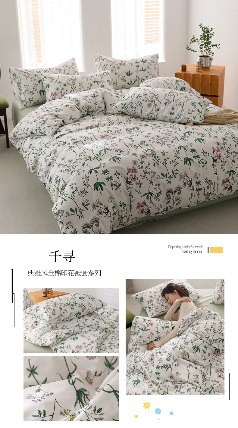 (总)倾慕家纺 2024新款典雅风全棉13370简约印花系列单被套
