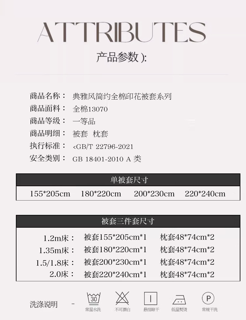 商品名称:(总)倾慕家纺 2024新款典雅风全棉13370简约印花系列单被套