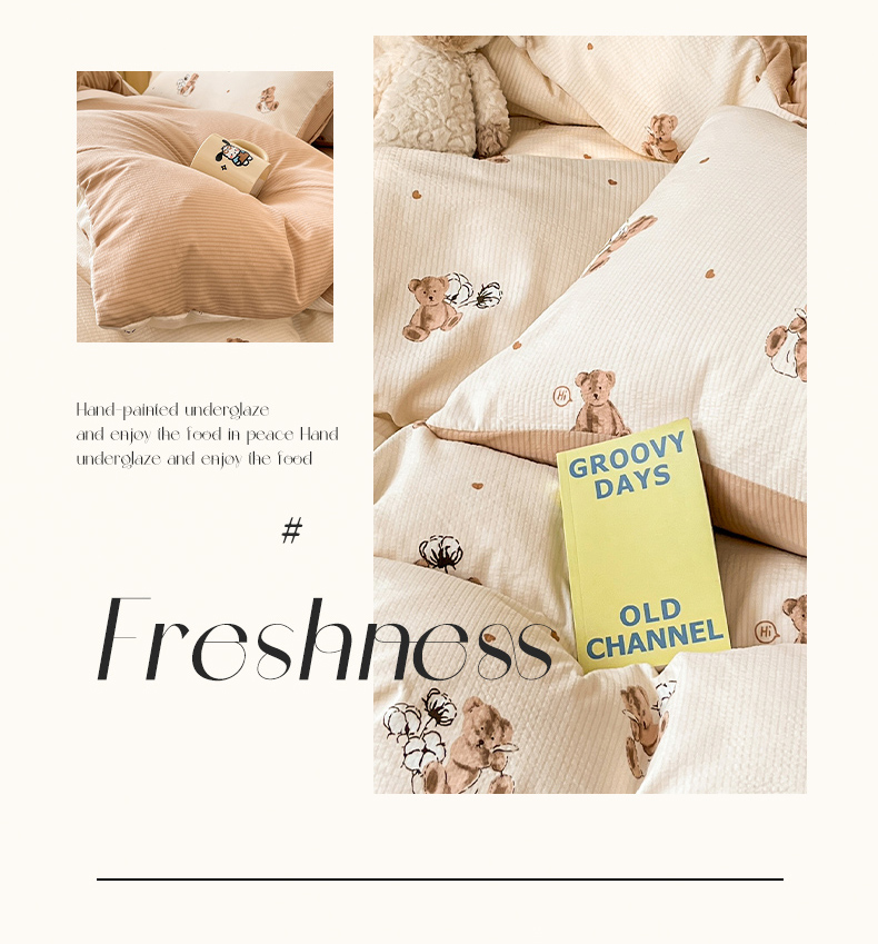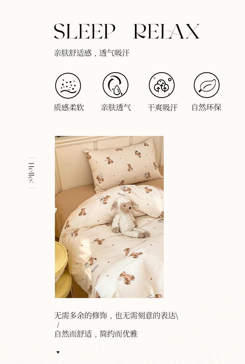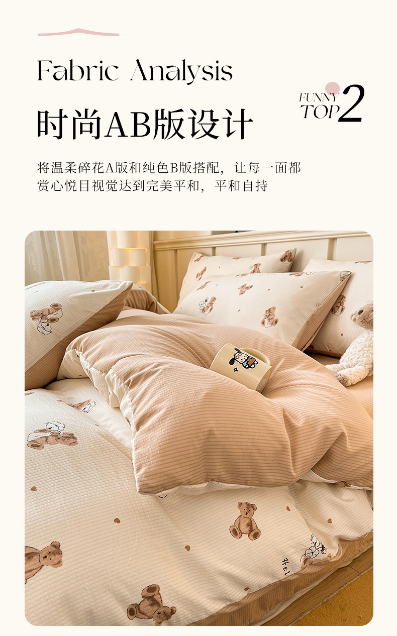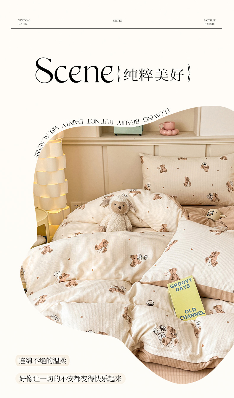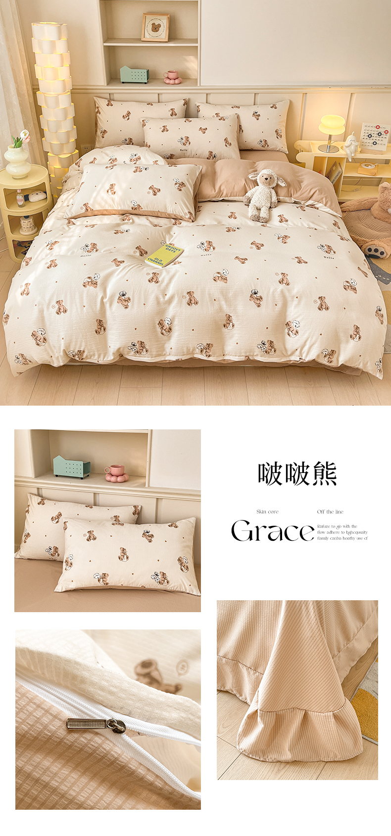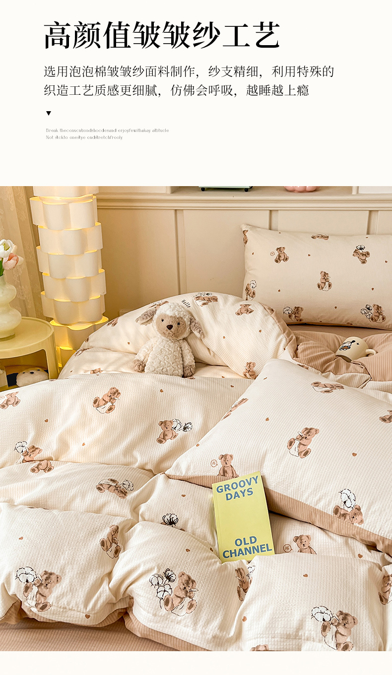 当前位置: 91家纺网 > 商品网购 > 床品套件 > 四件套 > 全棉普通四件套 > 梦之岛 2024新款A类母婴级泡泡棉皱皱纱碎花四件套 啵啵熊