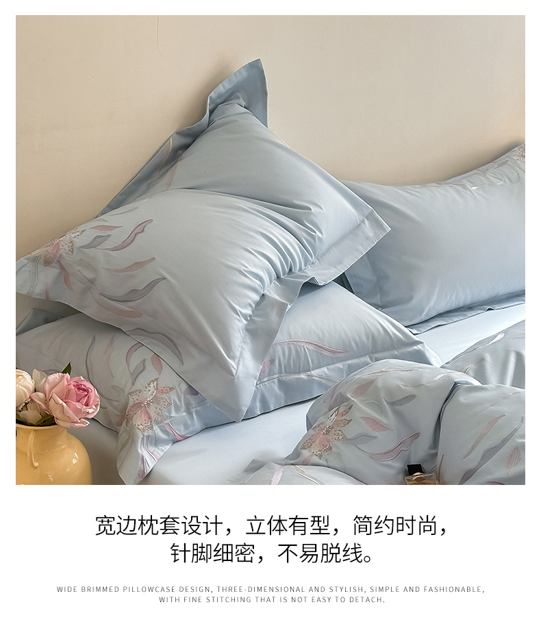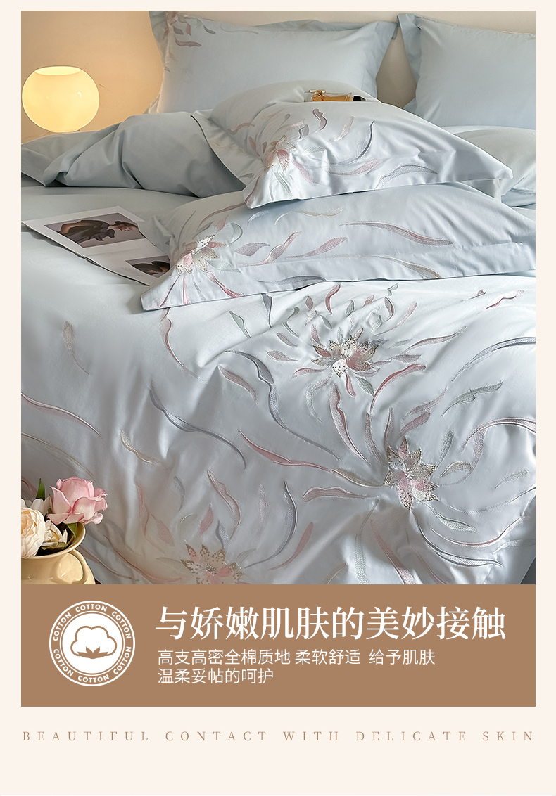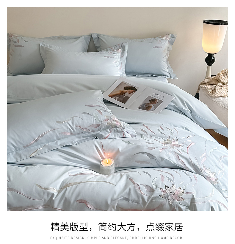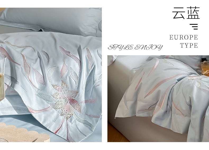 商品名称:爱缦 2024新款80支新疆棉刺绣四件套--薄雾云裳系列 云蓝