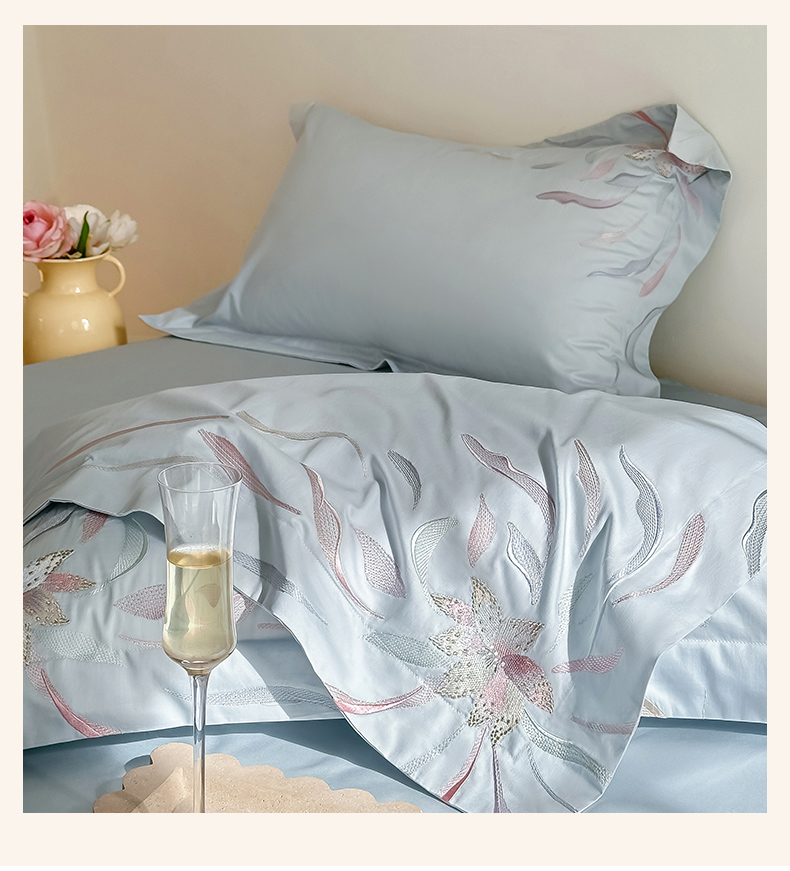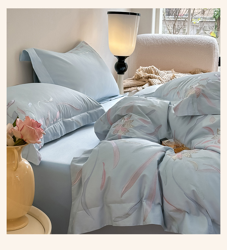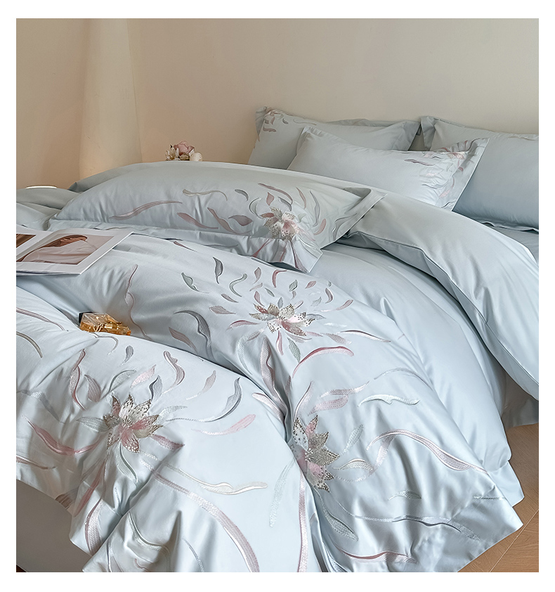 爱缦 2024新款80支新疆棉刺绣四件套--薄雾云裳系列 云蓝