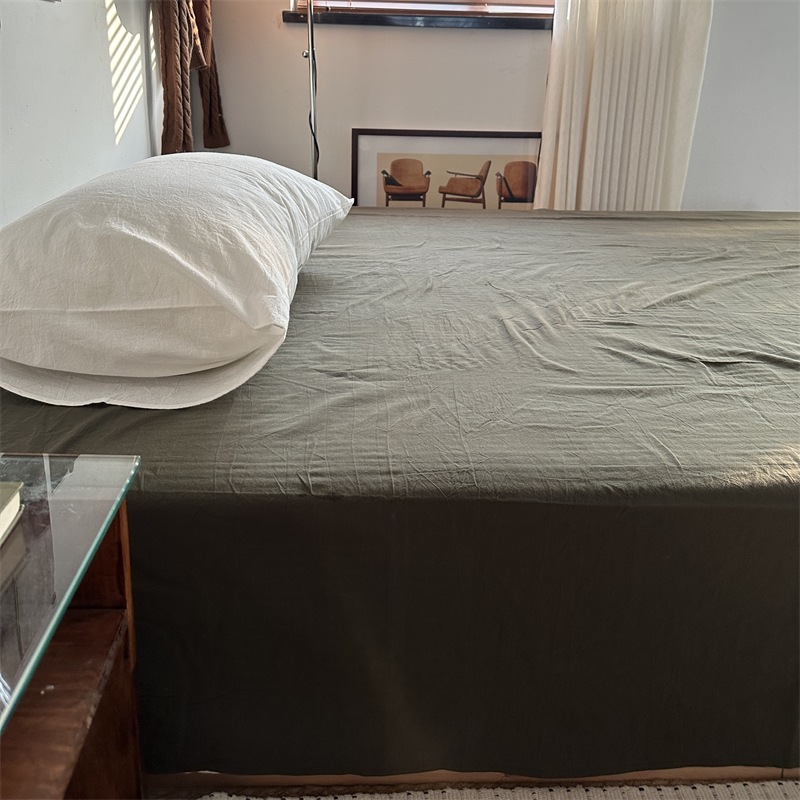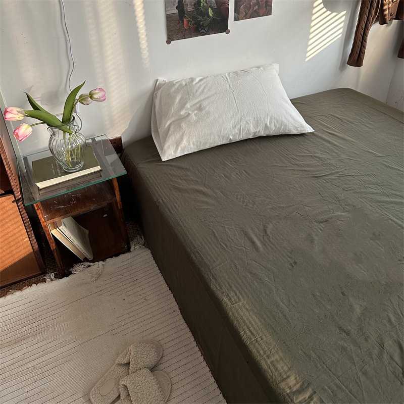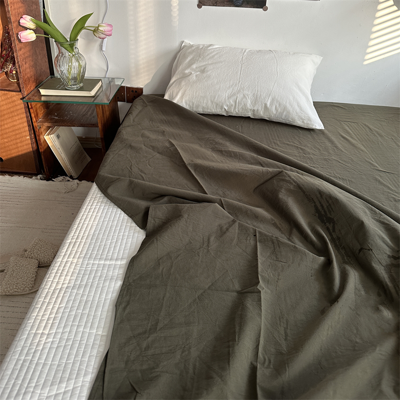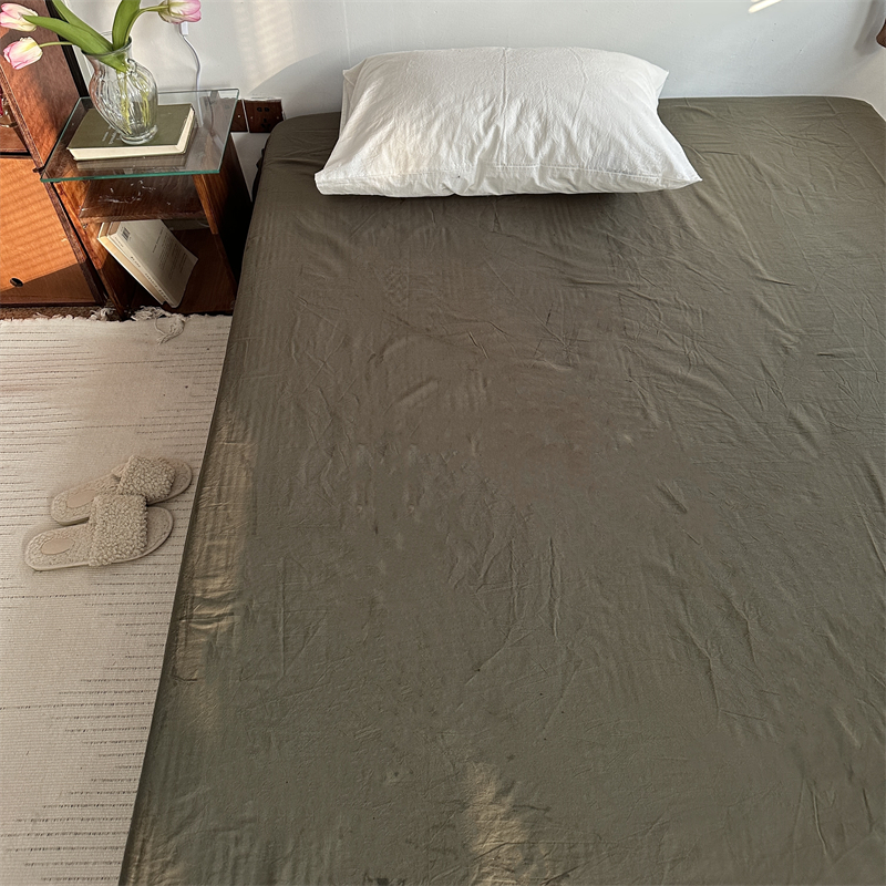 恋恋三季 2024新款全棉单品床笠床单 色织水洗棉-苔绿