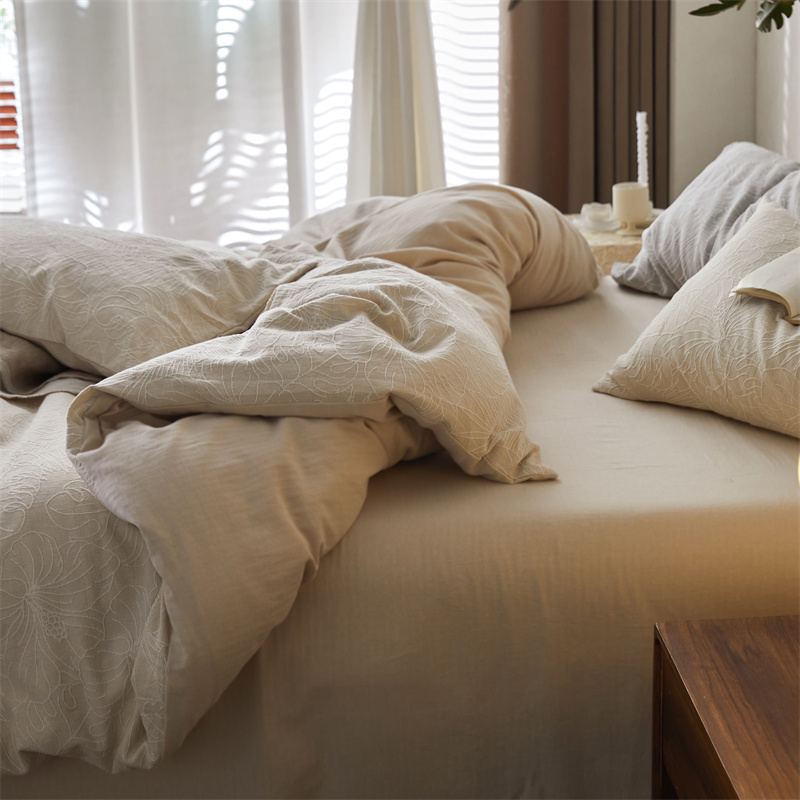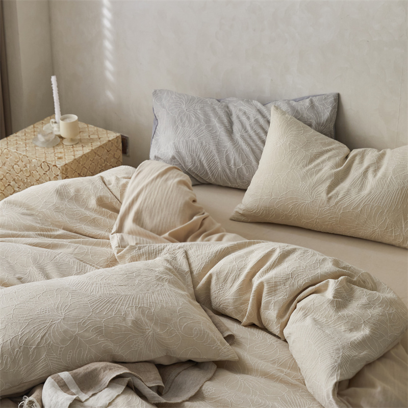 商品名称:玉宇阁 2024新款全棉双色大提花四件套清欢 清欢-米色