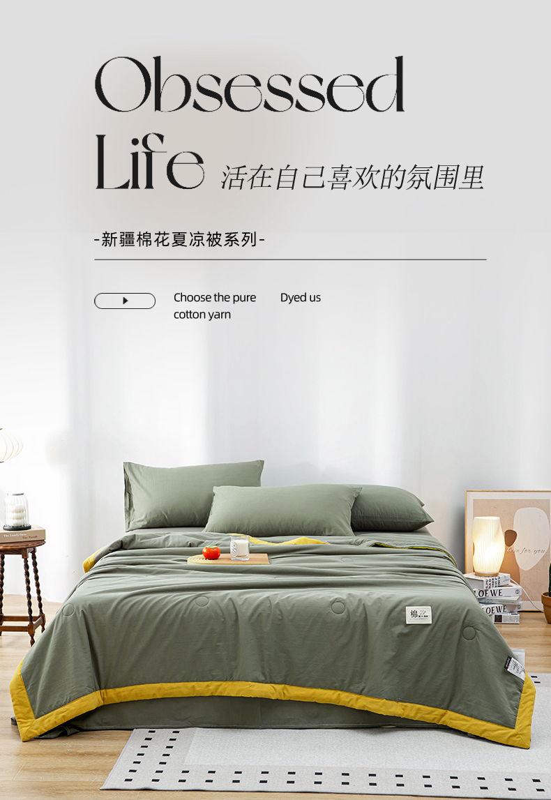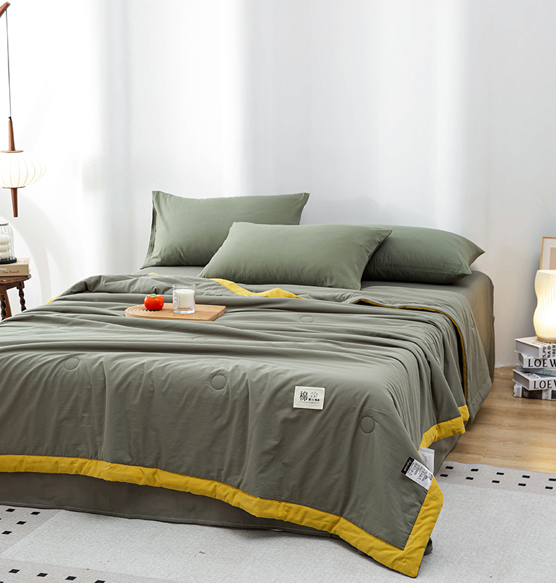 (总)鸣升家纺 新款里外全棉100%新疆棉花被夏被四件套,暗灰,本白,黄色,绿色,浅粉,浅蓝,浅驼,深蓝